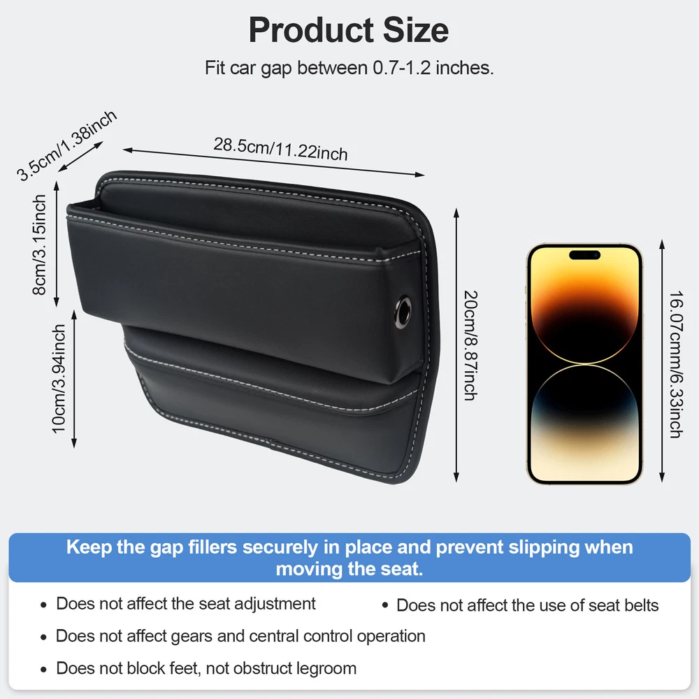 Car Seat Gap Filler Cinch Organiser Leather Sponge Filled Hold Phone Money Keys; About this item ☑️ Away From Losing and Mess - If you have problems on losing things in your car seat gaps, this car seat organizer is a good choice for you. It prevents small items or your phones from falling between the car seat gap, gives you a perfect space to put change, pens, cards, and other what you have in the car. We have reserved the data cable port in this car seat gap organizer, which is convenient for you to charge various electronic products.This front seat car gap filler will be a good car accessories. ☑️ High Quality PU Features - This car seat organizer has a good texture that feels smooth. The car gap organizer is made of high quality PU leather that looks very luxury and everywhere you touch are all soft. Instead of plastic, soft PU leather will not break your seat leather. ☑️ Design and Safety - This seat gap filler fits the car seat gaps. It will not shake when you brake suddenly, because it is adjustable from 0.4 to 1.7 inch to fill the gaps. The inside sponge has good resilience, it helps the car storage organizer fixed firmly. ☑️ New Version and Size - Differ from other brands, our leather car gap filler has no need to add the adhesive to fix on anywhere. You don't need to worry about adhesive things will break your seat. And please check if the car organizers and storage is suitable for your car, in length, heigth and thickness. ☑️ Xukey Promise - We believe that you will be satisfied with this car gap organizer for your front seat . If you have any problems with your gap filler for car, contact our customer service team and we’ll help you to fix it perfectly. ☑️NOT FIT for cars with a center console lower than the seats or at the same level. Please measure the dimension of your car seat gap before ordering. Color Black Mounting Type Insert Mount Number of Items 1 We accept Paypal and majoy credit cards payment When you place an order, please choose a shipping method and pay for the order including the shipping fee within 48 hours. And please make sure your current address correct after your payment within 1-2 days! About Shipping 1. Receiving time = Processing time + Shipping time 2. Processing Time: Around 1-3 Days 3. Shipping Time: 15-26 Days By Air Mail 3-10 Working Days By Express We do not guarantee delivery time on all international shipments due to differences in customs clearing times in individual countries, which may affect how quickly your product is inspected! Important Notice >Transit Time Is Best Estimated But NOT Guaranteed As Transit Time Varies >Orders may be subject to import taxes, customs duties and fees levied by the destination country.Additional charges for customs clearance must be fulfilled by the recipient; We no control over these charges, nor can we predict what they may be. 100% Customer Satisfaction Is Our Top Priority For Any Reasons You Are Not Satisfied With The Products Within 30 Days Of Purchase, Return Or Exchange Can Be Issued, Customers Are Responsible For The Return Shipping Cost And Subsequent Replacement Shipping Cost For An Exchange Item. Replacement Item Will Be Processed And Shipped Upon Return And Inspection Of The Original Item. Return Items Must Be In Their Original Packaging And Unused Condition, Or They Will Be Rejected And Sent Back To You. Due To The Nature Of The Products We Sell, We Carefully Inspect All Packages Prior To Shipping. All Of Our Products Are Sold As Brand New, All Damaged Products Are Considered Damaged During Transit. If You Received A Damaged Or Broken Item, Please Save All Packaging Material And Paperwork And Contact Us Immediately So We Can Help You With The Damage Claim With The Shipping Carrier. No Claims Will Be Honored After 14 Days Upon Item Receive. Digital Photos Will Be Required For All Cases. All Products Come With A 60 Days Limited Warranty Against Manufacturer’s Defects. No Exchange Will Be Issued On Products That Have Been Damaged In Any Way. Warranty Does Not Applied To Improper Installation, Water / Fire Damage, Modification, Or Any Acts Of Nature . If you have any question or concern, please feel free to contact us via eBay massage directly, we will get back to you as soon as we are available ATTENTION : We do not answer any emails over the weekend Please send message to us.We will reply your message in 24 hours, Our working time: 9:00 AM-22:30 PM (GMT+ 08:00 Beijing) 1:00 AM -14:30 PM (GMT+ 00:00 London) 19:00 PM-08:30 AM (GMT- 06:00 USA/Canada) Why Choose us? 1. A tremendous variety of products-- With over 200,000 items in stock, we are one of the world's largest online stores in automotive aftermarket product sector. You'll have more choices than what you can ever imagine. What's more, we're updating with over 100 new arrivals per month! 2. Affordable prices -- we are offering the latest car parts and accessories for almost 20 years, we're always keeping up with the newest trends, while most importantly, making the prices as low as we can. 3. Free worldwide shipping -- Yep, you won't believe that you'll enjoy free worldwide shipping with us (unless stated otherwise),it's not a joke,but an absolute truth. 4. No-question refund and return-- Anything wrong issuing quality and breakage can be returned or refundable. About this item ☑️ Away From Losing and Mess - If you have problems on losing things in your car seat gaps, this car seat organizer is a good choice for you. It prevents small items or your phones from falling between the car seat gap, gives you a perfect space to put change, pens, cards, and other what you have in the car. We have reserved the data cable port in this car seat gap organizer, which is convenient for you to charge various electronic products.This front seat car gap filler will be a good car accessories. ☑️ High Quality PU Features - This car seat organizer has a good texture that feels smooth. The car gap organizer is made of high quali
