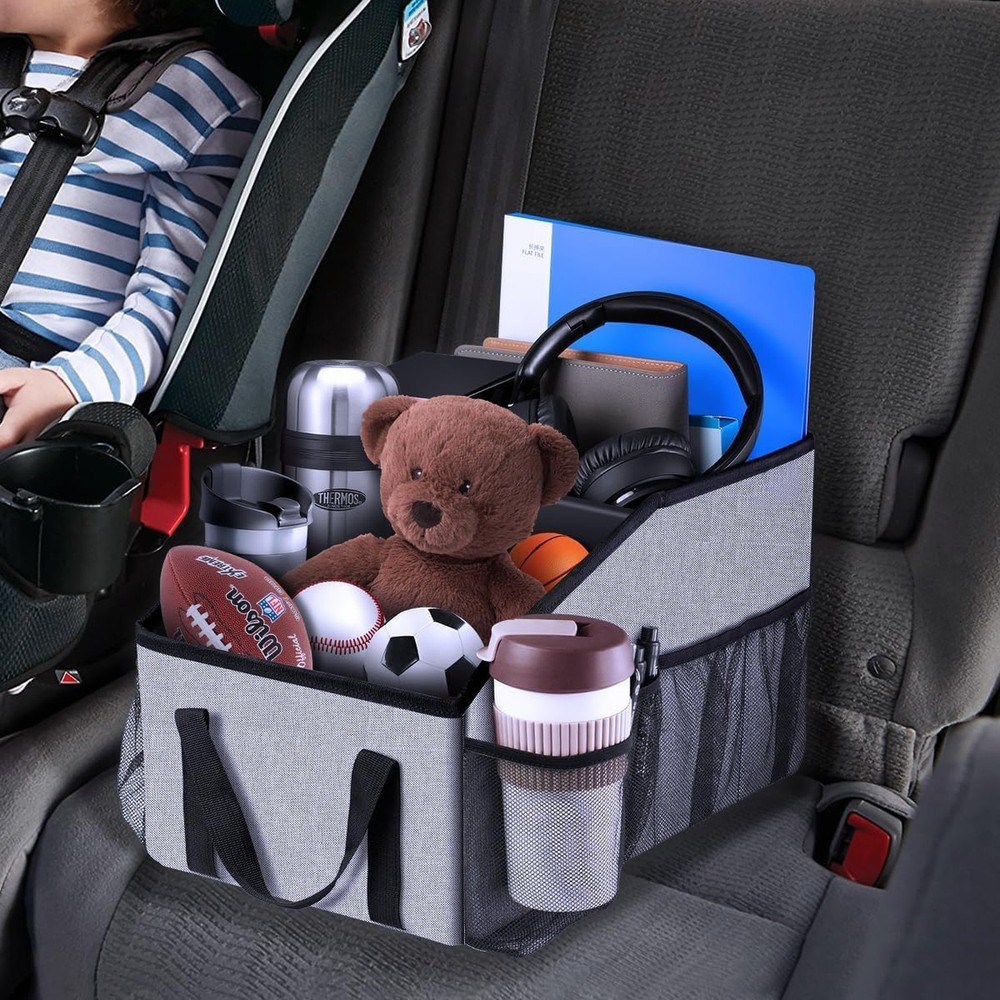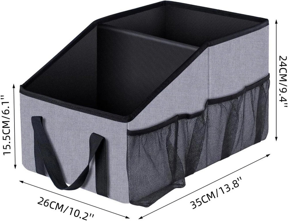 Car Seat Organizer for Back Seat Front Seat Between Seats,Car Storage Organizer for Kids with Multi- Pockets,Collapsible,cup Holders, Removable Dividers(Gray) Product Details Color: grey Brand: Ldex MPN: CO1 UPC: 676351770734 EAN: 0676351770734 Specific Uses For Product: Automobiles Material: Polyester Special Feature: Foldable Color: grey Brand: Ldex Finish Type: Brushed Product Dimensions: 10.04"D x 9.25"W x 17.72"H Shape: Rectangular Number of Items: 1 Maximum Weight Recommendation: 5 Pounds Specific Uses For Product: Automobiles Material: Polyester Special Feature: Foldable Color: grey Brand: Ldex Finish Type: Brushed Product Dimensions: 10.04"D x 9.25"W x 17.72"H Shape: Rectangular Number of Items: 1 Maximum Weight Recommendation: 5 Pounds UPC: 676351770734 Manufacturer: ldex Item model number: CO1 Target gender: Unisex Material Type: Polyester Additional product features: Foldable Batteries required: No Item Weight: 1.65 pounds PREMIUM CAR STORAGE ORGANIZER: The car organizer is made of heavy duty 600D polyester, which is dust and dirt resistant, eco-friendly and odor free. The reinforced frame makes the storage box stronger and less prone to deformation. Foldable, you can fold it into a flat rectangle in seconds and store it under the seat or in the trunk. MULTIFUNCTIONAL CAR STORAGE ORGANIZER : There are 4 pockets on both sides of the car storage organizer , which can be used to store small items such as notebooks, pens, children's books, snacks, cards, etc., wherever you want to store anything, you can DIY your organizer with removable dividers for easy living without clutter. VARIOUS USAGE SCENARIOS: car seat organizer as car console organizer, front seat organizer, rear seat middle organizer, seat organizer, office organizer, front seat organizer, floor organizer, A suitcase organizer or even a stroller can also store office supplies in the office, or items such as clothes in the bedroom, baby room. SECURELY FASTEN TO THE CAR SEAT: Thread your seat belt through the two loops on the back to hold the car seat organizer in place without slipping or sliding even in tight turns. PORTABLE: Our car seat organizer has two carrying handles on the shoulders to make it easier for you to get in and out of your car. 2 handles on each end for easy portability and even movement.
