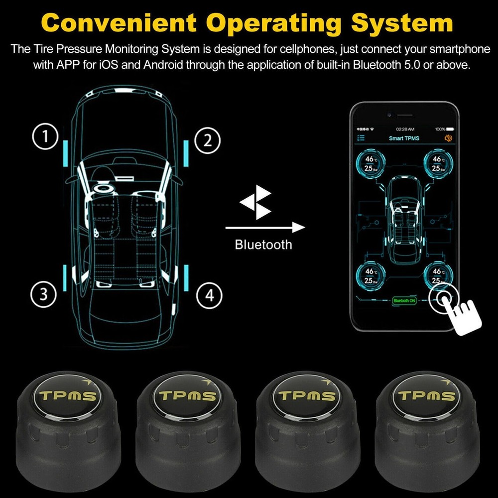 You may also like Solar Car TPMS LCD Display Tire Pressure Monitoring System w/ 4 Internal Sensors 39.27 USD 56.1 USD 4.0 USD 30% off Wireless USB TPMS LCD Car Tire Pressure Monitoring System + 4 External Sensors 40.8 USD 4.0 USD Wireless Solar TPMS LCD Car Tire Pressure Monitoring System + 4 External Sensors 28.71 USD 4.0 USD Wireless Solar TPMS LCD USB Car Tire Pressure Monitoring System 4External Sensor 36.17 USD 4.0 USD TPMS Factory 42607-06020 Tire Pressure Sensor PMVC010 Fits Toyota Lexus Scion US 20.39 USD 29.13 USD 4.0 USD 30% off Car TPMS Bluetooth 4.0 Tire Pressure Monitoring System 4 External Sensors US 47.5 USD 67.85 USD 4.0 USD 30% off Product Description Product Features: Dynamically Monitor: Dynamically monitors all tire pressure and temperature, improves fuel efficiency, and prolongs tire life and ensures driver safety. Money and Time Saving: The Bluetooth external TPMS sensors which are with long-lasting battery life for almost 3~5 Years can help save your fuels up to 11 cents per gallon with properly inflated tires. And you can maintain your car tire by yourself. Easy Installation: Anyone can set up in 3 easy steps in just 10 minutes. 1. Remove tire valve caps, put in anti-theft screws;2. Install the outer sensor on the tire valve in order; 3. Hold the sensor, tighten the anti-theft screw. (Each sensor has a unique ID code. Please make sure the sensor installed on corresponding tire valve). Convenient Operating System: The Tire Pressure Monitoring System is designed for cellphones, just connect your smartphone with APP for iOS and Android through the application of built-in Bluetooth 4.0 or above. Precision Direction System: 4 Sensors with waterproof and anti-corrosion, anti-theft technology, making it fully qualified for rainy days. High sensitivity, good accuracy for measuring pressure and temperature. How to Use: Option 1: Scan QR code on the card, then download and install; Option 2: Search "TPMSII" in APP Store or Google Play Store, then download and install. Bluetooth TPS Outer Sensor Installation: Each sensor has a unique ID code. Please make sure the sensor installed on the corresponding tire valve. Note: 1. Please follow the mark and install the sensor on the corresponding tire. Please save the installation tools (screws and wench) in the car, for installing or un-stalling sensors. After sensor installation, please check if there / 's tire leakage. 2. Support a cellphone with Bluetooth 4.0 or above. Do NOT support Cellphone with Bluetooth lower than 4.0. Product displays by cellphone. During driving, please be careful when viewing tire pressure and temperature on a cellphone. If tire pressure accelerates down or up continuously, please stop the car and check if there's any problem with the tire. 3. This product can read tire pressure and temperature, but it cannot avoid sudden accidents caused by the tire. It's important to use a tire with high quality. Slightly tire leakage makes tire pressure decreases over time is normal. It has nothing to do with this product installation. 4. Do not connect to your phone before you installed the sensors(the sensor will only be activated with high pressure), otherwise, it will connect failed or show errors. Product Specification: Type Bluetooth Wireless Tire Pressure Monitoring System Bluetooth Version Bluetooth 5.0 Working Voltage 3V Quiescent Current Ём14-1.8ІЬA Bluetooth Operating Frequency 24GHz Response Time Ём5s Display Mode APP Waterproof Rating |P67 Working Humidity 95%MAX Tire Pressure Detection Range 10-1300kPa Tire Pressure Detection Accuracy ЁР10kPa Temperature Detection Accuracy ЁР3Ёц Working Temperature -30Ёц~+70Ёц Storage Temperature -30Ёц~+70Ёц Battery Capacity 140mAh Battery Life 3-5 years Package Includes: 4 x Bluetooth5.0 TPMS Sensors 1 x Card with App QR Code 1 x Wrench 1 x User Manual Payment Shipping Returns 1 . We accept Paypal only. 2 . We only ship to your Paypal's address, please ensure your shipping address on your paypal account is correct. If you have any change for address, please inform us in ebay note. 3 . Payment must be fulfilled within 7 days after purchase. All non-paying orders will receive an unpaid reminder from eBay. Once we have received cleared full payment, your items will be dispatched in 1-3 days. It normally takes : 7-14 business days for US, UK, Canada, Australia, Asian countries. 14-21 business days for Spain, German, Middle East countries. 18-25 business days for Russia, Brazil, Italy, France, European countries. 24-32 business days for South American countries. We send items by air mail to the buyer without track number. There maybe some delay due to flight, holiday, weather, local post, local natural disaster impact. if your shipment delays, we hope you can be patient, and at the same time contact us, we will try our best to help you. Import duties, taxes and charges are not included in the item price or shipping charges. These charges are the buyer's responsibility. Please check with your country's customs office to determine what these additional costs will be prior to bidding / buying. If any item is defective upon receipt or do not work, please contact us for the return address, return is accepted within 30 days after the buyer receiving the item. Returned item has to be in its original condition. Buyer is responsible for return shipping costs . After receiving the return we will make a replacement depends on our available stock, if not available, a refund will be issued. Payment 1 . We accept Paypal only. 2 . We only ship to your Paypal's address, please ensure your shipping address on your paypal account is correct. If you have any change for address, please inform us in ebay note. 3 . Payment must be fulfilled within 7 days after purchase. All non-paying orders will receive an unpaid reminder from eBay. Shipping Once we have received cleared full payment, your items will be dispatched in 1-3 days. It normally takes : 7-14 business days for US, UK, 