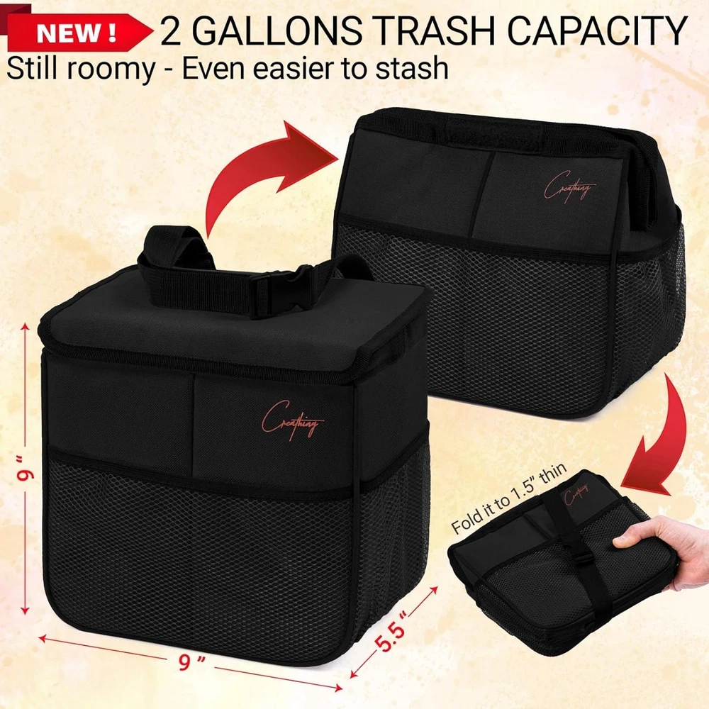 Store New Arrivals Add to Favorite View Feedback Contact Car Trash Can Foldable, Waterproof | Organizer Bag or Garbage Can for Console/Seat (Medium, Black), 2 Gallons Description Item model number CL-03 Manufacturer Lab Room Type vehicles Capacity 2 Gallons Color Black Special Feature Collapsable Product Dimensions 9 x 9.5 x 5.5 inches; 9.6 ounces Material Polyester Shape Rectangular Opening Mechanism fasteners Recommended Uses For Product inside vehicles to contain car trash Is Discontinued By Manufacturer No Finish Type Painted Size 2 Gallons Seamless integration in any vehicle. This car trash bin easily folds flat when not in use, while offering a generous 2-gallon capacity. The large adjustable strap ensures a perfect fit in any vehicle, from small or compact cars, to SUVs, trucks, vans, campers, and even boats Convenient and Easy to Clean. With a robust seal and a durable leakproof lining, this car garbage can effectively contains both dry and wet waste, safeguarding your car's upholstery. Cleaning is a breeze with the stain-resistant material - just wipe it down. The lining is also easy to pull out when it needs cleaning Sturdy and Reliable. Made of 3 layers of high-quality materials and reinforced by stitching, this car trash bag is built to last and withstand daily use. Its strong construction and durable straps ensure it stays firmly in place, preventing any unwanted spills or messes Multipurpose Bag. This trash can for car easily doubles as a storage bag for toys, car care products and pet accessories or as a handy and efficient cooler bag due to its waterproof capability and foam insulation layer. Plus, take advantage of the three outer pockets for additional car storage space Trusted Brand. With years of industry experience, Creathing Lab guarantees utmost customer satisfaction. Our car trash cans are carefully made, tested against odors, and resistant to wear and tear. It’s time to free your car from clutter! Product Description It’s not just about where you’re going, it’s about how you get there... The video showcases the product in use. The video guides you through product setup. The video compares multiple products. The video shows the product being unpacked. 1 Detachable Lid 2 Leakproof Lining 3 Outer Pockets 4 Adjustable Strap 5 Easy Open/Close The extra foam layer makes it your handy cooler bag! Your car trash bag may be used to store useful items or to chill your favourite drinks. Just add some ice or chilled gel packs and enjoy the party! Our car garbage cans, to trust and rely on. Choose yours now! Add to Cart Add to Cart Add to Cart Add to Cart Add to Cart Add to Cart Customer Reviews 4.5 out of 5 stars 2,461 4.5 out of 5 stars 2,461 4.7 out of 5 stars 867 4.7 out of 5 stars 412 4.5 out of 5 stars 2,461 4.5 out of 5 stars 2,461 Price $19.95 $ 19 . 95 $19.95 $ 19 . 95 $22.25 $ 22 . 25 $22.25 $ 22 . 25 $16.87 $ 16 . 87 $17.75 $ 17 . 75 Leakproof Lining ✔ ✔ ✔ ✔ ✔ ✔ Detachable lining ✘ ✘ ✔ ✔ ✘ ✘ Adjustable strap included ✔ ✔ ✔ ✔ ✔ ✔ Extension strap included ✔ ✔ ✔ ✔ ✘ ✘ Anti-slip bottom ✘ ✘ ✔ ✔ ✘ ✘ Recommended use: Large family car, truck, SUV Large family car, truck, SUV Any vehicle Any vehicle Small / compact cars Small / compact cars ABOUT US We offer the best prices around on high quality products. Our E-store includes media such as books, movies, music and games while offering electronics, toys, sporting apparel, clothing, tools, general home, garden items and more. SHIPPING We are always working hard to ensure your package arrives as soon as possible. Please understand that some factors like weather, high postal traffic, and the performance of shipping companies are outside of our control. We offer free shipping to the lower 48 states and ship within 2 business days of payment, usually sooner. We do not accept P.O. Boxes. Please provide a physical address. For shipping outside of the continental USA, we only use eBay's Global Shipping Program.The item is shipped to KY and then sent to the rest of the world. International customers are responsible for all duties and taxes. Continue to check out in order to calculate costs for shipping the item to your country. Messages regarding eBay's Global Shipping Program MUST be directed at eBay EXCLUSIVELY. RETURNS We offer a 30-Day Return Policy on items which you are not completely satisfied with. You have the option for a full-refund or an exchange of the item. No returns are available on items shipped outside of the USA. PAYMENT We accept PayPal. CONTACT US This page content is yet to come Please ad us to your favorite seller and visit again later Thank You CUSTOMER SATISFACTION We try our very best to make sure every customer is completely satisfied. If there's a problem, message us! We're happy to help. WE ACCEPT Copyright © 2021 AutoDS. | All Rights Reserved