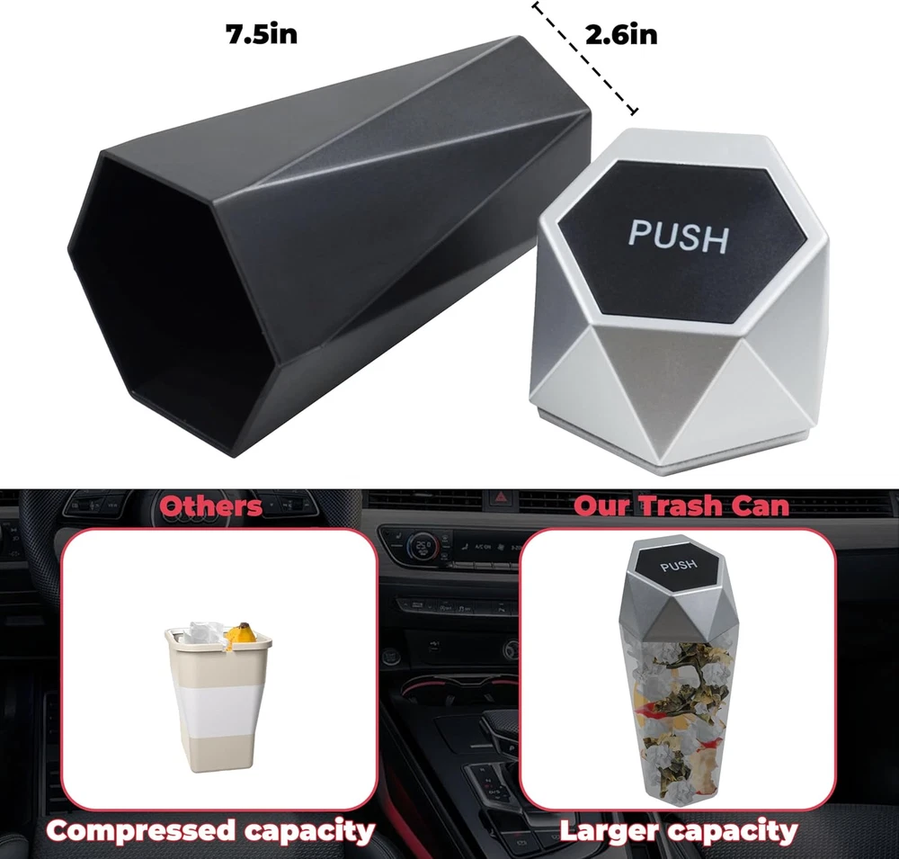 Store New Arrivals Add to Favorite View Feedback Contact Car Trash Can with Lid, Garbage Bin for Women, Cute Trash Can Car Interior Accessories for Seat Cup Holder, Organization Car Must Haves Essentials Mini Trash Can with Garbage Bag Description Item Shape Rectangular Item Dimensions L x W x H 5"L x 2"W x 0.5"H Capacity 750 Liters Color Black Special Feature Compact, Push-Button Cover Material Nylon Material Type Nylon Room Type Automotive Shape Rectangular Opening Mechanism Press-Top Recommended Uses For Product Automotive Finish Types Polished Finish Type Polished Special Features Compact, Push-Button Cover Size 1 pack 【Multipurpose】This small car interior organization can be placed at front cup holder and car door,backseat pocket, also can be used as a storage can on the desktop in the office or at home. Compact trash can is a good solution for ashtray, gum and candy bar wrappers in the vehicle. 【Space Efficient】 These organizers are lightweight and compact, only 7.5*2.6*2.6 inches and weighs 70 grams, and the diamond design can match any vehicle interior without being redundant, showing your unique taste. 【Convenient】Car garbage can features Push-Button cover which ensures the convenient using of the item. "PUSH"cover is easily opened and automatically closed,easily thrown into the trash. Car trash can is more than a car must have! 【Sturdy and Durable】Mini trash can, a reliable car accessory, is made from ABS Materials, which make every small trash can stronger and more hard-wearing.Totally sealed lid and special opening design effectively seal in any foul odor and keep the trash out of sight. 【Easy Cleaning】Designed with a leak-proof lining, this mini trash can is perfect for wet waste. Its smooth surface allows for quick and easy cleaning, ensuring hassle-free maintenance. Product Description ABOUT US We offer the best prices around on high quality products. Our E-store includes media such as books, movies, music and games while offering electronics, toys, sporting apparel, clothing, tools, general home, garden items and more. SHIPPING We are always working hard to ensure your package arrives as soon as possible. Please understand that some factors like weather, high postal traffic, and the performance of shipping companies are outside of our control. We offer free shipping to the lower 48 states and ship within 2 business days of payment, usually sooner. We do not accept P.O. Boxes. Please provide a physical address. For shipping outside of the continental USA, we only use eBay's Global Shipping Program.The item is shipped to KY and then sent to the rest of the world. International customers are responsible for all duties and taxes. Continue to check out in order to calculate costs for shipping the item to your country. Messages regarding eBay's Global Shipping Program MUST be directed at eBay EXCLUSIVELY. RETURNS We offer a 30-Day Return Policy on items which you are not completely satisfied with. You have the option for a full-refund or an exchange of the item. No returns are available on items shipped outside of the USA. PAYMENT We accept PayPal. CONTACT US This page content is yet to come Please ad us to your favorite seller and visit again later Thank You CUSTOMER SATISFACTION We try our very best to make sure every customer is completely satisfied. If there's a problem, message us! We're happy to help. WE ACCEPT Copyright © 2021 AutoDS. | All Rights Reserved