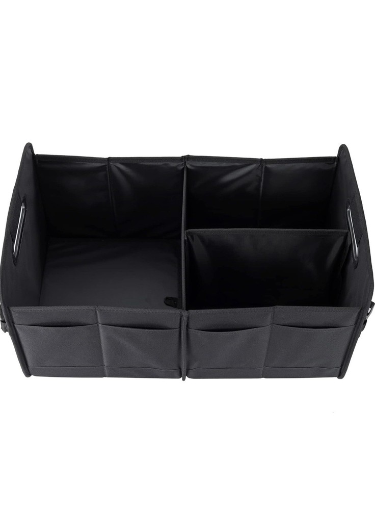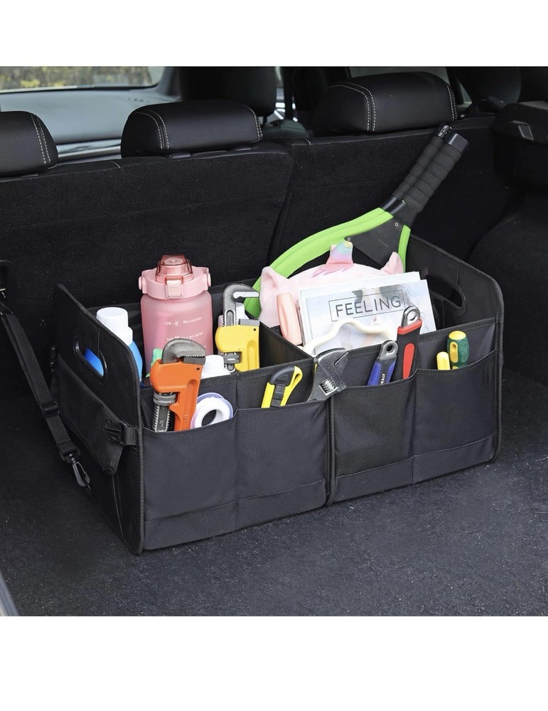 The Car Trunk Organizer is a product designed specifically for organizing the trunk of a car, created by the brand CAR. This trunk organizer helps to keep items in the trunk neat and tidy, making it easier to find and access essential belongings while driving. It provides a convenient solution for storage and organization, especially for those who often transport cargo or need to keep pet barriers in place while on the road.