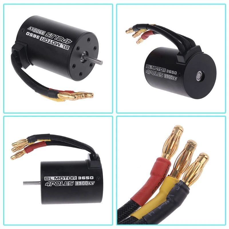 Car Upgrade Parts Brushless Electric Motor for 1/8 1/10 for C 4 pole 12 slot high-torque 3.175mm shaft diameter High purity windings maximizes efficiency engineered for energy conversion balanced rotor,smoothness for best reliability and CNC machined 6061 billet aluminum heatsink can High ABEC 5 oversized bearings Stator- super thin 0.2mm laminations Removalbe/replaceable rotor Suit for 1/8 1/10 scale car Specifications: Watts: 900W <13V Amps: 69A KV 3900KV 50000 Diameter: 36mm Length: 50mm Shaft length: 15mm Shaft diameter: 3.175mm Plug type: 4mm golden banana plug Level: Splash-proof Package Information: Package size: 71 * 57 * 43mm / 2.79 * 2.24 * 1.69in Package weight: 177g / 6.2oz Package List: 1 * 3650 3900KV Motor