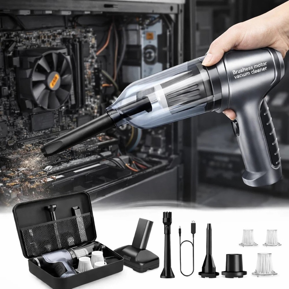 Car Vacuum Portable Cordless 18000PA High Power – 4-in-1 Mini Handheld Vacuum Cleaner Product Description: Keep your car spotless anytime, anywhere with this powerful 18000PA Portable Cordless Car Vacuum. Designed for convenience and performance, this compact 4-in-1 mini vacuum delivers strong suction in a lightweight, easy-to-handle design. With high-power 18000PA suction, it quickly removes dust, crumbs, pet hair, sand, and debris from car seats, carpets, dashboards, and tight corners. The cordless design allows full mobility without tangled wires, making it perfect for cars, trucks, RVs, home, and office use. This versatile 4-in-1 vacuum includes multiple attachments for vacuuming, blowing, inflating, and detailed cleaning, giving you maximum flexibility for every cleaning task. Key Features: Powerful 18000PA high suction performance Cordless & rechargeable for easy portability 4-in-1 multifunction design (vacuum, blower, inflator, detail cleaner) Lightweight and compact mini design Ideal for cars, home, office, and travel Easy-to-empty dust container Washable and reusable filter Whether you're cleaning your car after a road trip or maintaining a tidy interior daily, this mini vacuum provides professional-level power in a portable size. Feel free to message me with any questions!