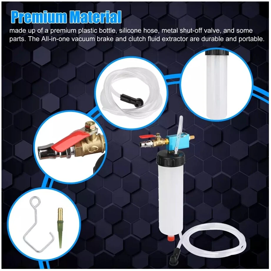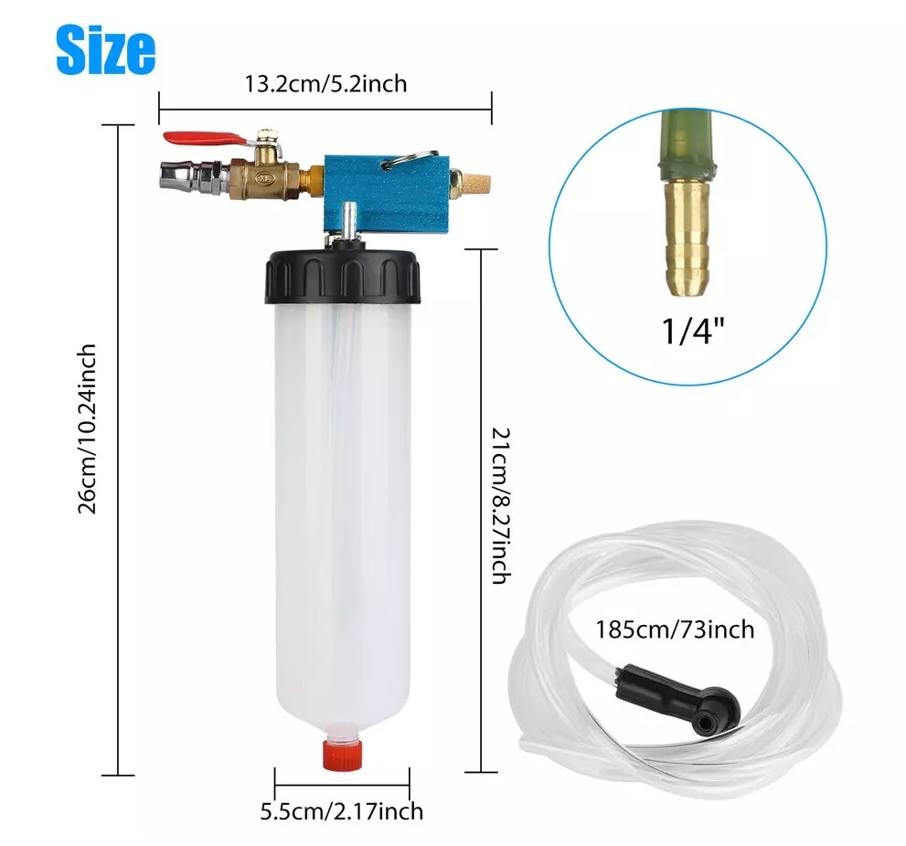 Manufacturer Part Number: Does not apply Capacity: 300ml hose Length: 185cm/73inch Air inlet Size: 1/4" air quick plug gtin13: 553559906335 Manufacturer Warranty: 3 Months OE/OEM Part Number: Car Oil Change Tool Brand: Unbranded UPC: 553559906335 Interchange Part Number: Transmission Fluid Oil Filler Adapter Country/Region of Manufacture: China Type: Fluid Replacement Tool Fit For: replacing brake fluid, clutch oil, engine oil, power steering oil Application: replacing brake fluid, clutch oil, engine oil, power steering oil Material: Plastic + Silicone + Metal Superseded Part Number: Pneumatic Bleeding Universal Fitment: Yes