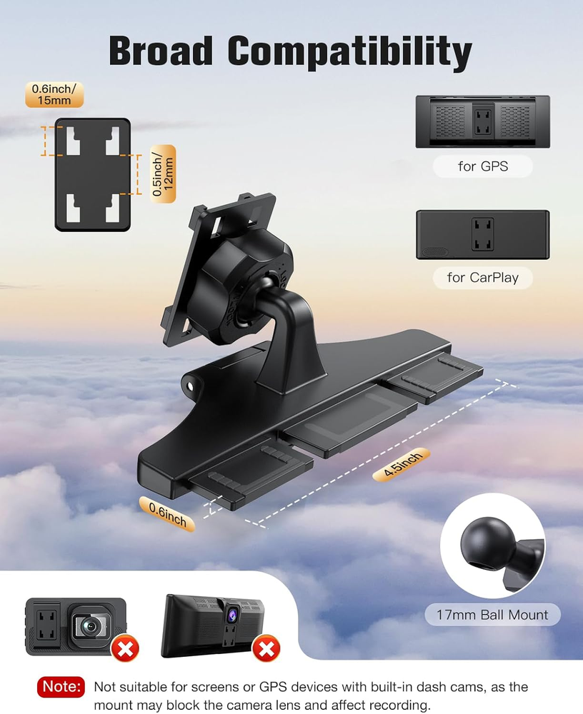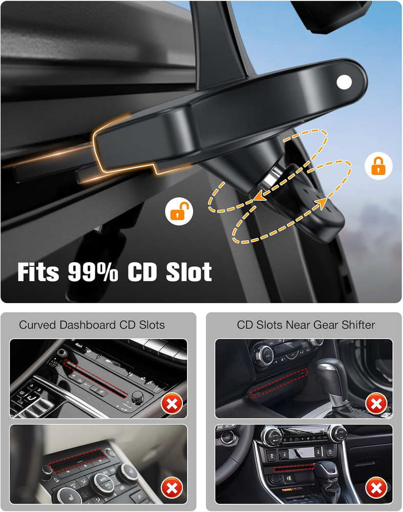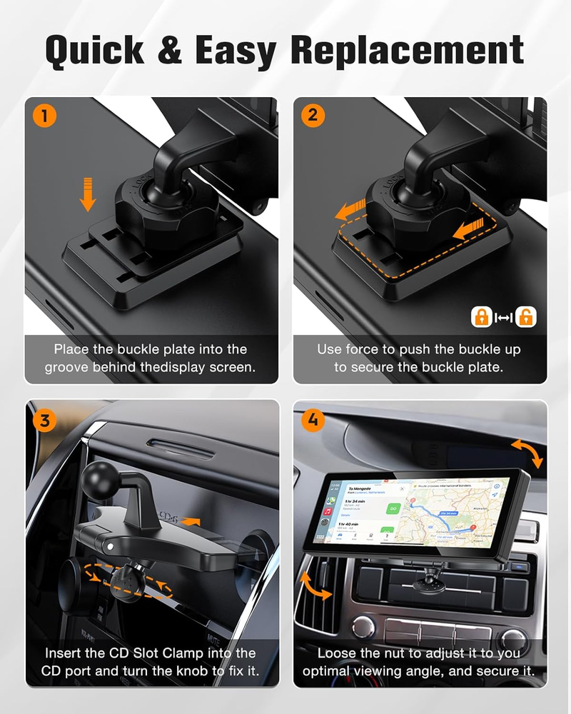 Store New Arrivals Add to Favorite View Feedback Contact CD Slot Mount for Carplay Screen 360° Rotation Tool-Free Installation Sturdy and Secure Compatible with In-Car Monitors CD Slot Carplay Mount Description Item model number CD Whats in the box iGoevo Car CD Slot Bracket Mount Mounting Type CD Slot Mount Color Black Brand iGoevo Compatible Devices Fits 7 to 10.26 Inch CarPlay Displays Item Weight 2.89 ounces Special features Rotatable, Non-Slip, Cold Resistant, Heat Resistant, Adjustable Manufacturer iGoevo Direct Package Dimensions 4.8 x 2.91 x 2.8 inches Compatible Phone Models CD mount for carplay screen Broad Compatibility with 7-10 Inch Displays :The iGoevo CD Slot Mount is designed for CarPlay screens and supports 7 to 10-inch displays. Perfect for enhancing your driving experience, it ensures a secure and stable mounting solution for your CarPlay screen. Quick & Tool-Free Installation:Featuring a hassle-free, tool-free design, this mount easily inserts into your car's CD slot without modifications. It’s compatible with most vehicles, including sedans, SUVs, and trucks. Sturdy & Shockproof Build : Crafted from high-strength materials, the mount features a precision clamping mechanism that prevents slipping and shaking. Even on bumpy roads, your screen remains stable and secure. 360° Adjustable Viewing Angles : With full 360° rotation and multi-angle tilt adjustments, you can effortlessly position the screen for an optimal viewing experience, whether for the driver or passengers. CD Playback Unaffected – Quick Detach When Needed:Thoughtfully engineered to preserve your CD player’s functionality, this mount can be easily removed and reinstalled in just minutes whenever you want to play a CD. No tools required – simply detach the mount, insert your disc, and reattach it securely. Please note: This mount requires a CD slot to install and is not compatible with CarPlay screens that have a built-in dash cam, as it may block the camera or interfere with recording. Before purchasing, please ensure your vehicle has a CD slot and that your screen does not include a built-in dash cam feature. Product Description See How Our CD Slot Mount Fits Your CarPlay Display The video showcases the product in use. The video guides you through product setup. The video compares multiple products. The video shows the product being unpacked. CD mount for carplay screen Merchant Video Compatibility Reminder This mount fits vehicles with a standard CD slot. Not compatible with cars lacking a CD player or with recessed or low-positioned CD slots. Examples of incompatible models: 2011 Lexus IS 250, 2012 Ford Flex, 2015 RAV4, 2018 BMW X3. Is it difficult to install? Will it damage my CD slot? This mount is tool-free and can be installed in under two minutes. It fits securely into the CD slot without affecting CD playback or damaging the slot structure. Is it stable on bumpy roads? Will it shake or fall off? The mount is designed for a firm hold with anti-slip components. Most users report it stays rock solid even during off-road driving. Will this CD slot mount work with any car that has a CD player? Not always. This mount fits standard front-loading CD slots, but may not work with recessed or low CD slots that affect visibility or stability. Not compatible with models like the 2011 Lexus IS 250, 2012 Ford Flex, 2015 Toyota RAV4, and 2018 BMW X3. What material is it made of? Is it durable? The mount is designed for a firm hold with anti-slip components. Most users report it stays rock solid even during off-road driving. Will it obstruct my dashboard screen or controls? Our mount supports both standard and inverted installation. If it blocks your screen or controls one way, simply switch to the other installation method to avoid obstruction and ensure a perfect fit. ABOUT US We offer the best prices around on high quality products. Our E-store includes media such as books, movies, music and games while offering electronics, toys, sporting apparel, clothing, tools, general home, garden items and more. SHIPPING We are always working hard to ensure your package arrives as soon as possible. Please understand that some factors like weather, high postal traffic, and the performance of shipping companies are outside of our control. We offer free shipping to the lower 48 states and ship within 2 business days of payment, usually sooner. We do not accept P.O. Boxes. Please provide a physical address. RETURNS We offer a 30-Day Return Policy on items which you are not completely satisfied with. You have the option for a full-refund or an exchange of the item. No returns are available on items shipped outside of the USA. PAYMENT We accept PayPal. CONTACT US This page content is yet to come Please ad us to your favorite seller and visit again later Thank You CUSTOMER SATISFACTION We try our very best to make sure every customer is completely satisfied. If there's a problem, message us! We're happy to help.