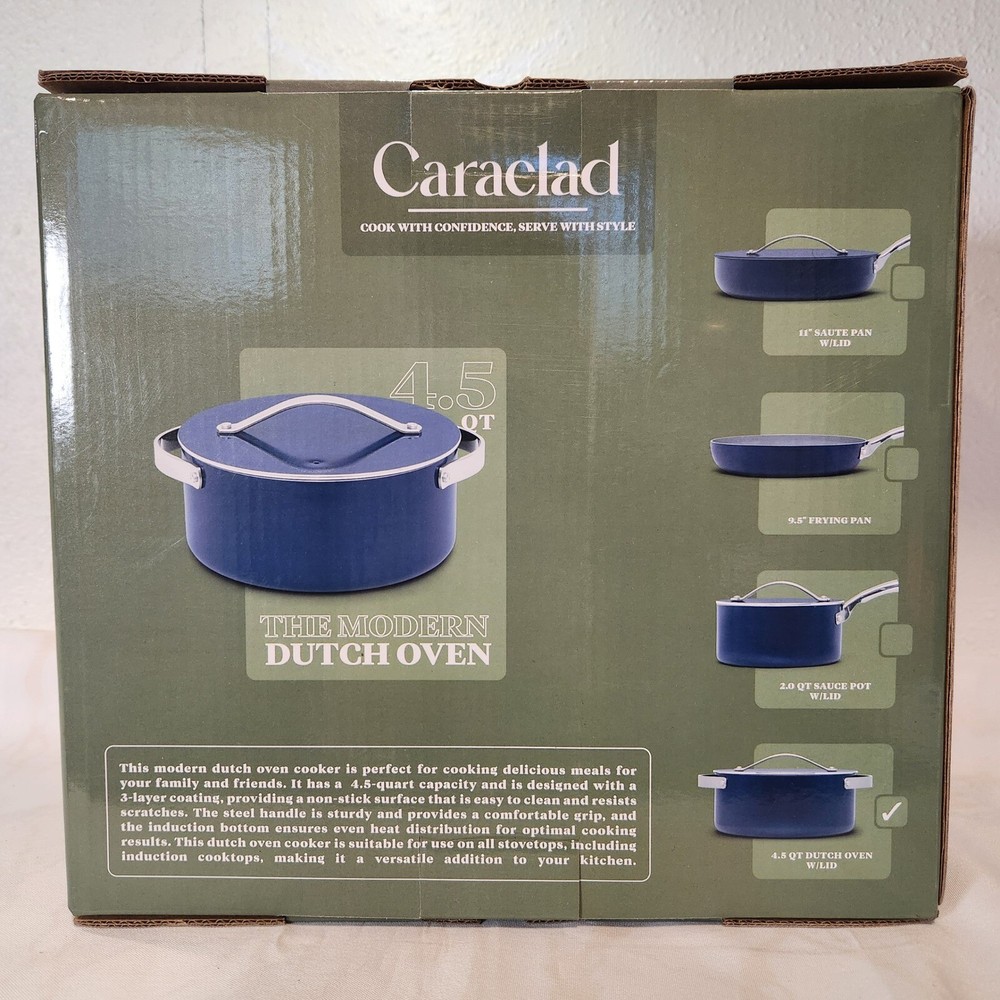 Brand new in box, opened for picture only. Caraclad The Modern Dutch Oven Blue With Lid 4.5 Qt 3 Ply Aluminum Stored in a smoke-free and pet friendly environment. All orders ship within two business days, combine orders for discount on shipping. Reasonable offers accepted. Thanks for looking!