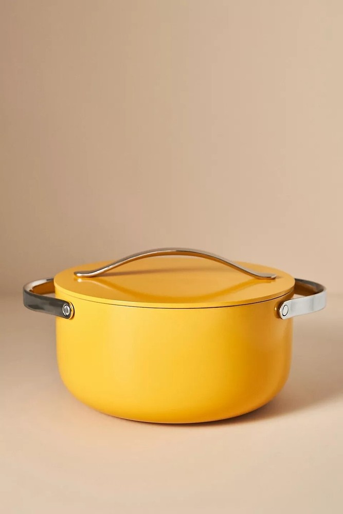 Style No. 89283204; Color Code: 083 Caraway's ceramic Dutch Oven Pot allows for healthy cooking in the kitchen without harmful chemicals: use for stews, bread baking, and more. Featuring a non-toxic ceramic-coated interior, this durable non-stick pot makes cooking easier than ever, cleaning (dare we say) enjoyable, and adds a pop of color to any home. Ceramic-coated aluminum, aluminized steel Non-stick Hand wash; dry thoroughly before storage Not dishwasher or microwave safe Oven safe up to 550°F Imported Dimensions 6.5 quart 10.5" diameter