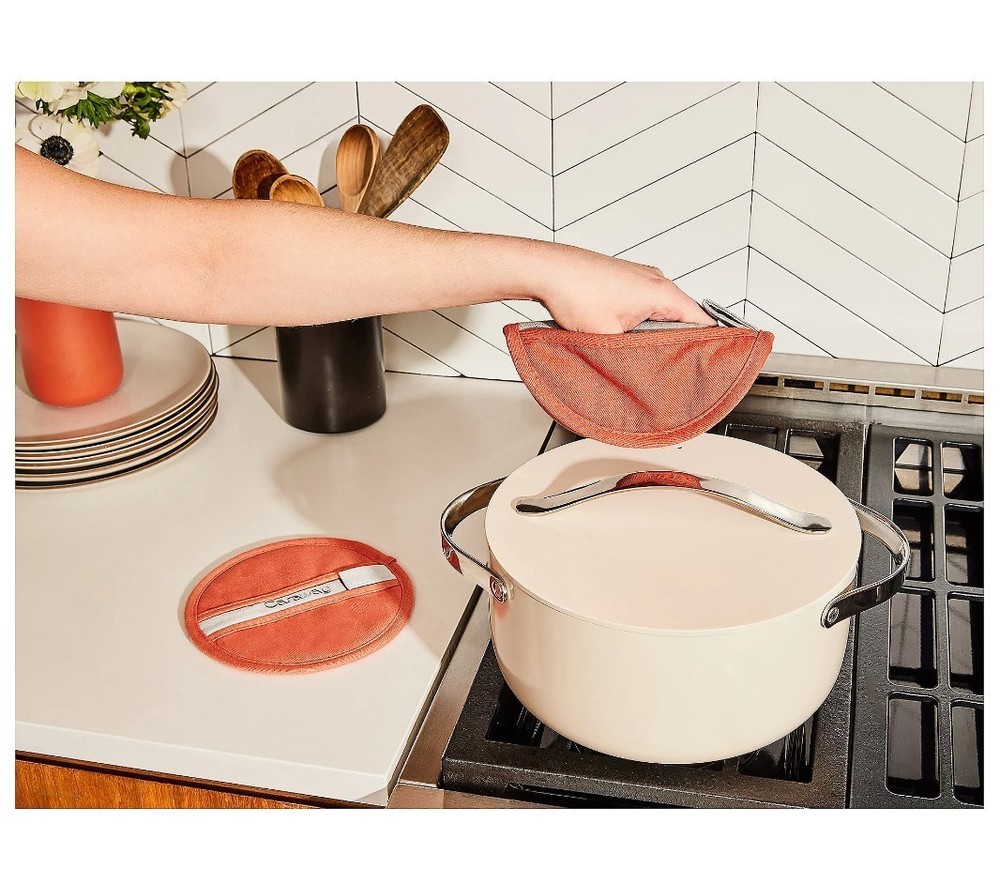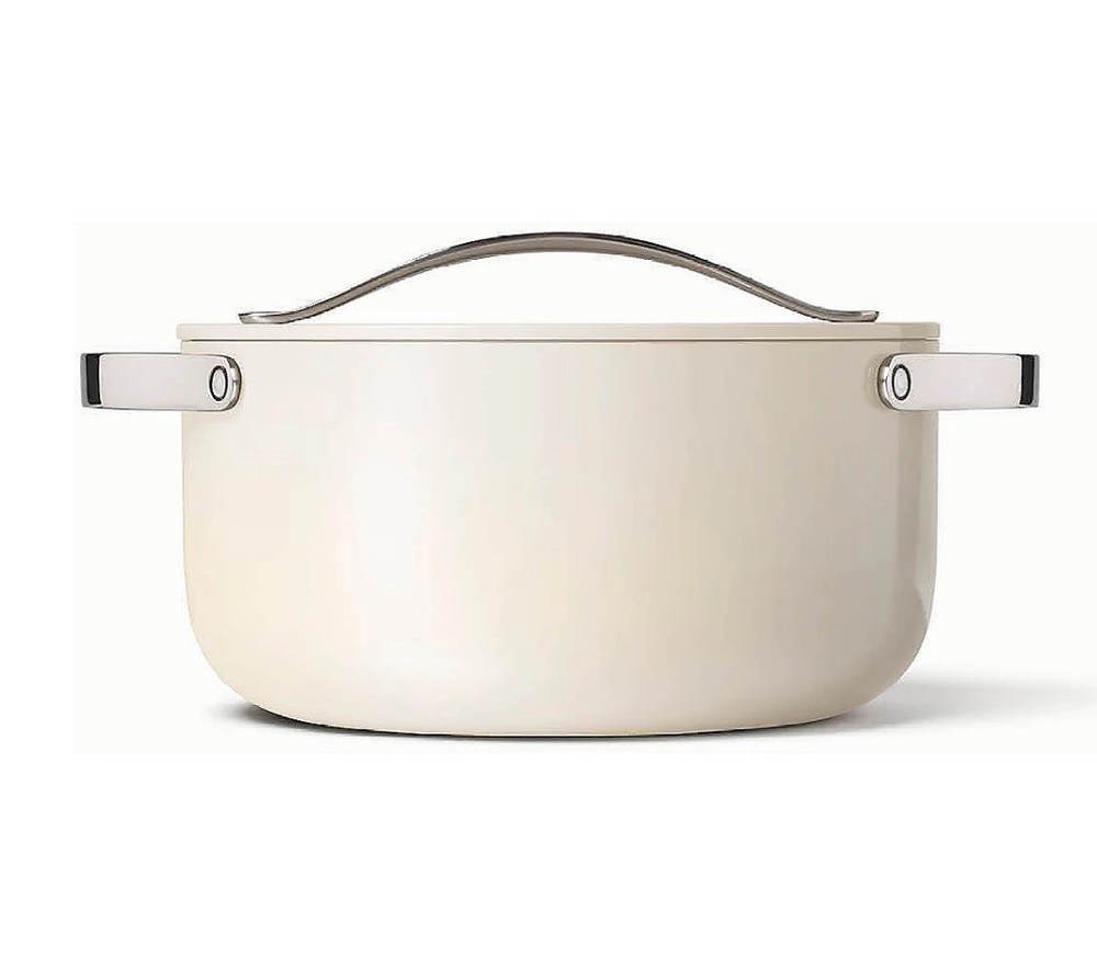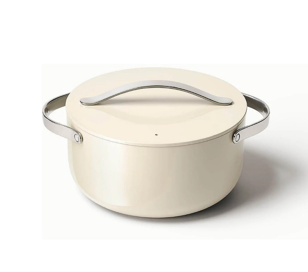 Caraway Home 6.5 Qt Nonstick Ceramic Dutch Oven – Healthy, Stylish, and Versatile Cooking Essential The Caraway Home 6.5 Qt Nonstick Ceramic Dutch Oven is a premium, multi-functional cookware piece designed for healthier cooking with exceptional performance and modern aesthetics. Crafted with a heavy-duty aluminum core and coated in a non-toxic, PFOA-free, PFAS-free, lead-free, and cadmium-free ceramic nonstick surface, it ensures even heat distribution while allowing food to release effortlessly without the need for excess oil or butter. The durable ceramic coating is scratch-resistant and built to last, making it safe for metal utensils and ideal for everyday use. With a generous 6.5-quart capacity, this Dutch oven is perfect for family-sized meals, including braising meats, simmering soups and stews, slow-cooking roasts, baking artisan bread, making casseroles, or preparing one-pot dinners. The tight-fitting lid locks in moisture and heat for tender, flavorful results, while the ergonomic stainless steel handles stay cool on the stovetop and are oven-safe up to 550°F (with lid up to 500°F). It is compatible with all stovetops, including induction, and can move seamlessly from stovetop to oven to table for beautiful serving. The sleek, minimalist design is available in a range of contemporary colors, with a fingerprint-resistant exterior that’s easy to wipe clean. The nonstick interior resists staining and is dishwasher-safe, though hand washing is recommended to preserve the coating’s longevity. This Dutch oven combines health-conscious materials, superior cooking performance, and elegant style, making it a standout piece for any kitchen—perfect for home cooks who value clean ingredients, easy maintenance, and restaurant-quality results.