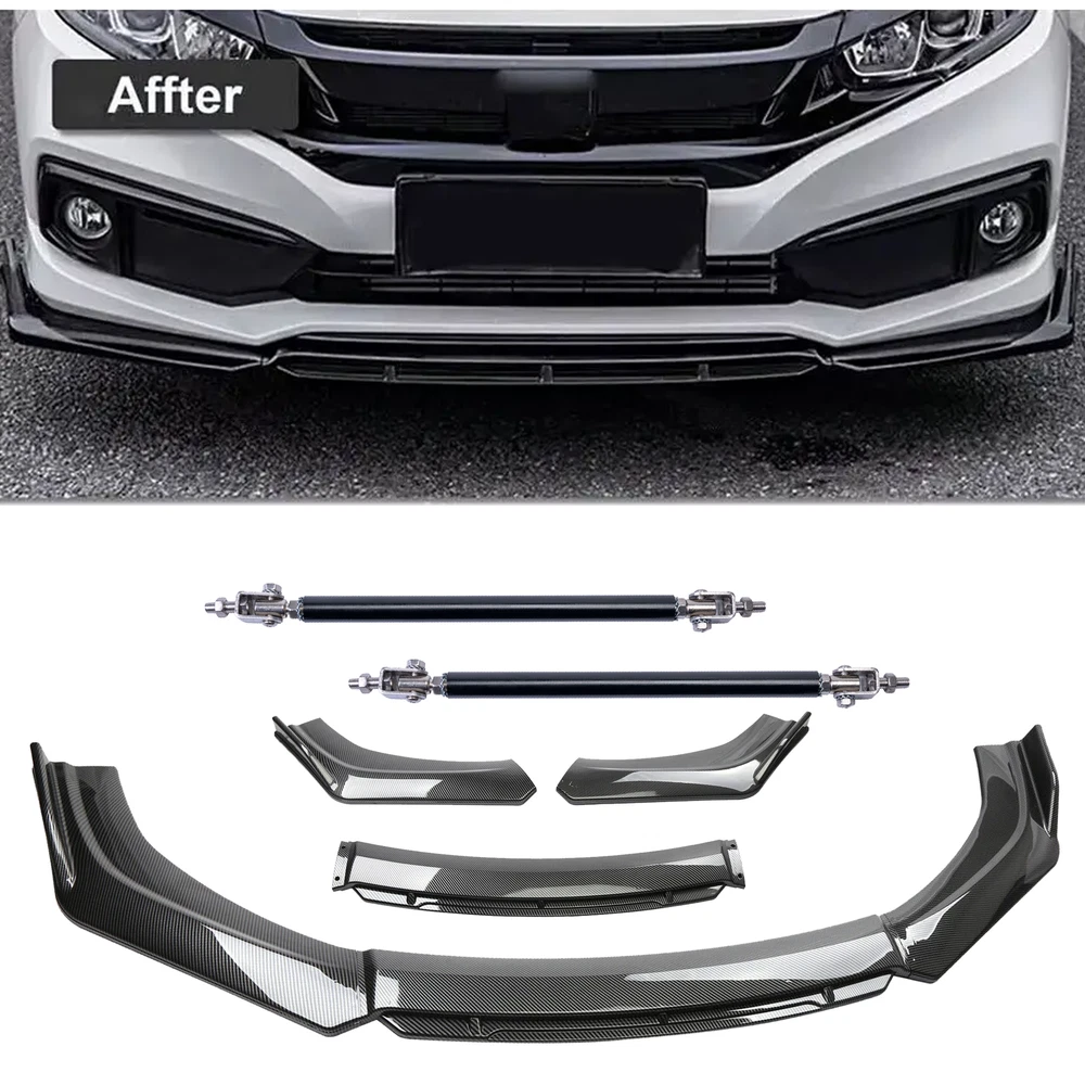 Material: High quality ABS Polyurethane Number of Pieces: 4+2 Items Included: Mounting Hardware Manufacturer Part Number: Does Not Apply Modified Item: Yes Superseded Part Number: Chin-Diffuser-Front-Bumper-Splitter Fitment Type: Performance/Custom Surface Finish: Painted Custom Bundle: Yes Features: Double Layer,Adjustable Angle!!!Universal Fit Type: Front Bumper Cover Lip Front Spoiler Weight: about 2200 g Color: Carbon Fiber Black Interchange Part Number: Chin-Diffuser-Front-Bumper-Splitter Bumper Lip Length: 75 inch Warranty: Yes Brand: Unbranded Other Part Number: 4pcs Front Bumper Lip Body Kit Spoiler + 2pcs Strut Rods Placement on Vehicle: Front, Left, Right Attachment Method: Bolts,Rivets,Screws Mounting Hardware Included: Yes