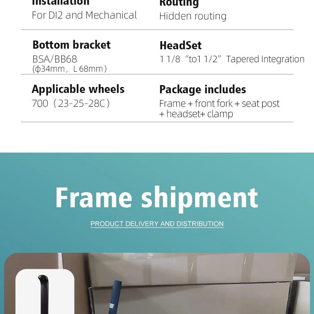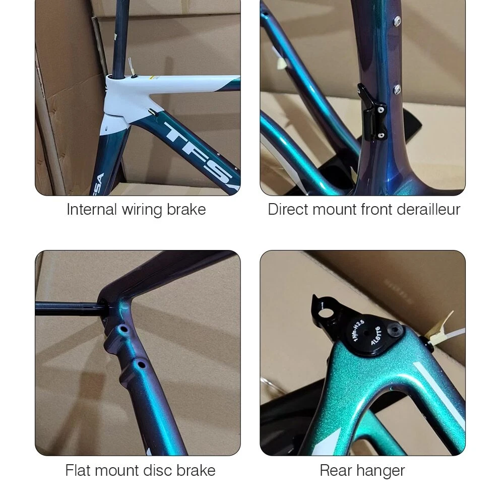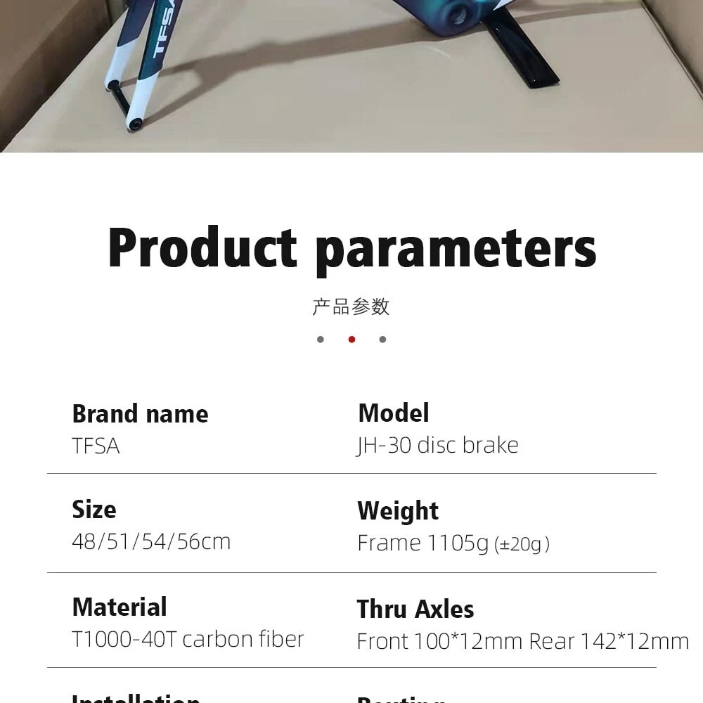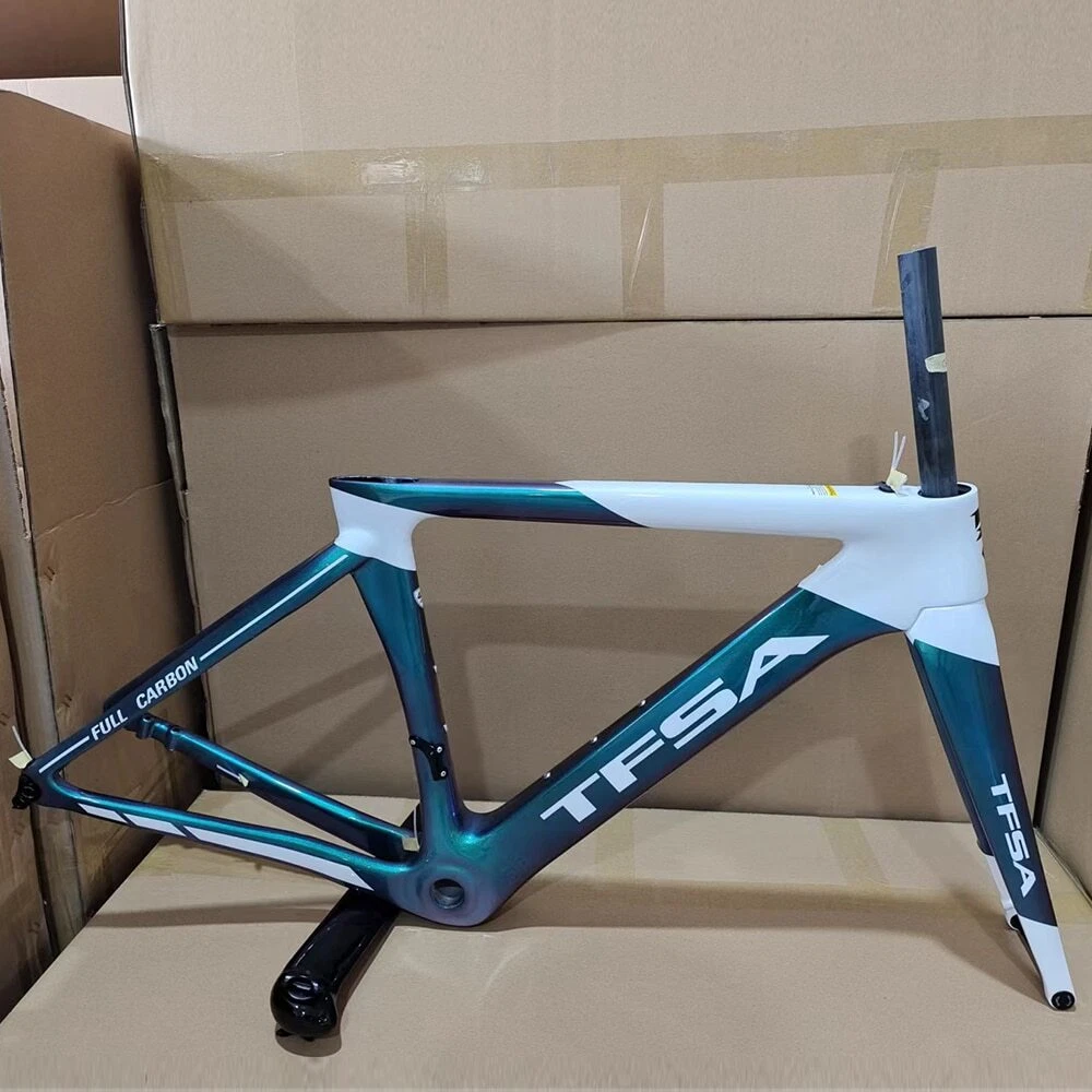 1. Bottom bracket: BB68 2 Brake: Disc brake 3. Weight: 1180g 4. Size:48-51-54-56cm available 5. Material: T1000 carbon yarn 6. Color: a lot, contact business 7. Accessories: Fork + Seat Tube + Wrist Set + Frame+Coaxial rod Company Profile Dongguan Bangzhi Sports Goods Co., Ltd. was founded in 2010, currently located in Jinping Industrial Zone, Shishou City, Jingzhou city, focusing on carbon fiber bicycles, bike accessories and other related sports goods. We have a professional R & D and production team, providing one-stop service from R & D, weaving, pre-molding, molding, filling, painting, vehicle assembling to logistics, and providing customers with quality product solutions. In order to serve customers better, in 2019, we set up two branches of Huizhou Zhihe Sports Equipment Co., LTD and Huizhou Huazhong Sports Goods Co., LTD. At present, our plant has an expanded area of about 10000m2, where there are more than 600 employees and an annual output of 40K, effectively making up for the lack of quality control and production capacity. We attach importance to the protection of intellectual property, and have registered brand TFSA in 2015 in many countries. Our products have appearance patents or practical patents, which can better protect the online customers. At the same time, we also follow the rules of environmental protection, and make continuous efforts to keep innovation, to improve product competitiveness and to create a better quality of life for the society. Looking forward to traveling with you in the future!