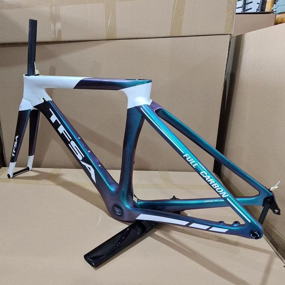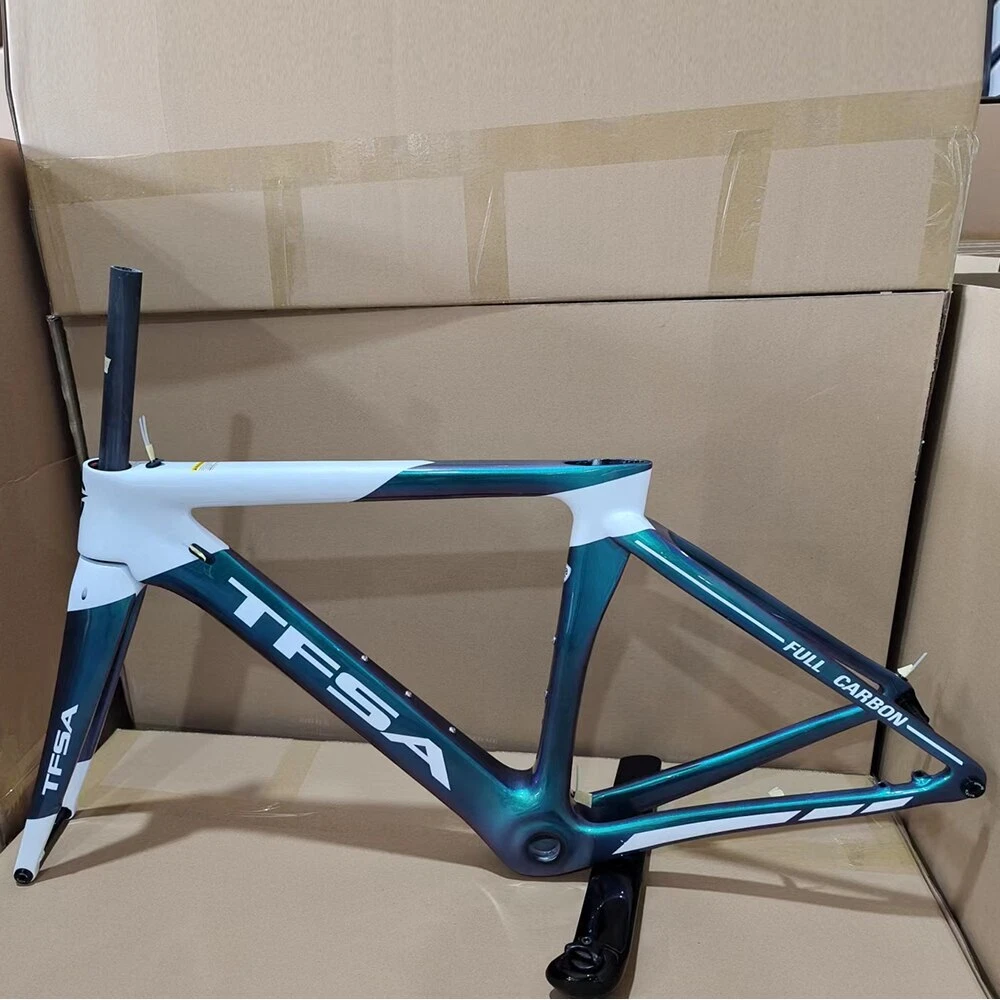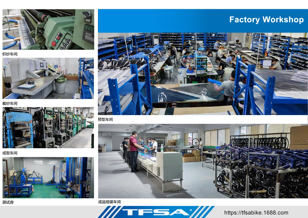 1. Bottom bracket: BB68 2 Brake: Disc brake 3. Weight: 1180g 4. Size:48-51-54-56cm available 5. Material: T1000 carbon yarn 6. Color: a lot, contact business 7. Accessories: Fork + Seat Tube + Wrist Set + Frame+Coaxial rod Company Profile Dongguan Bangzhi Sports Goods Co., Ltd. was founded in 2010, currently located in Jinping Industrial Zone, Shishou City, Jingzhou city, focusing on carbon fiber bicycles, bike accessories and other related sports goods. We have a professional R & D and production team, providing one-stop service from R & D, weaving, pre-molding, molding, filling, painting, vehicle assembling to logistics, and providing customers with quality product solutions. In order to serve customers better, in 2019, we set up two branches of Huizhou Zhihe Sports Equipment Co., LTD and Huizhou Huazhong Sports Goods Co., LTD. At present, our plant has an expanded area of about 10000m2, where there are more than 600 employees and an annual output of 40K, effectively making up for the lack of quality control and production capacity. We attach importance to the protection of intellectual property, and have registered brand TFSA in 2015 in many countries. Our products have appearance patents or practical patents, which can better protect the online customers. At the same time, we also follow the rules of environmental protection, and make continuous efforts to keep innovation, to improve product competitiveness and to create a better quality of life for the society. Looking forward to traveling with you in the future!