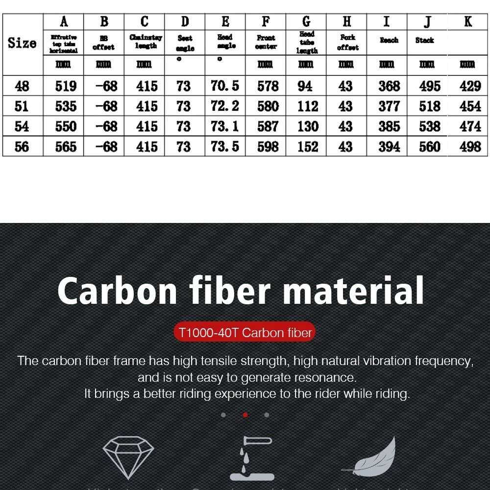 Frame Size: 56 cm Set Includes: Frameset Wheel Size: 700C Department: Men Manufacturer Warranty: 1 Year Compatible Bike Type: BMX Bike, BMX Bike - Flatland, BMX Bike - Old School, BMX Bike - Racing, Bonanza Bike, Chopper, Cyclocross Bike, Dirt Jumper, Downhill Bike, Dutch Bike, Electric Bike, Fitness-/Crossbike, Gravel Bike, Hardtail Bike, Hybrid Bike, Mini BMX, Mountain Bike, Racing Bike, Recumbent Bike, Rickshaw Bike, Road Bike, Single Speed/Fixed Gear, Touring Bike, Trekking Bike, Trial Bike, Unicycle Country/Region of Manufacture: China Part Type: Bicycle Frame Material: Carbon, Carbon Fiber Brand: Unbranded