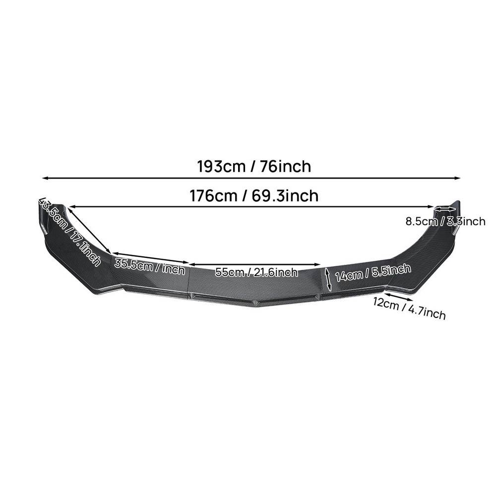 Product Description Note:The angle of the side pieces may not match the car angle perfectly, due to defferent car model; But does not affect the use. Feature: Made of Updated durable and sturdy ABS plastic, adding stiffeners, no deformation in long-term use. More longer and wider than others. Provide an elegant and personalized appearance. Prevent the car from being scraped and improve the level of the decoration of the car. Come with screws, More convenient installation and stable installation. This is a set(5 pieces) front bumper cover lip front spoiler Instruction Not Included, Professional Installation Is Highly Recommended. Specification: Type:Front Bumper Lip Body Kit Spoiler Material:ABS Placement on Vehicle: Front;Lower Color: Carbon Fiber Look Package Included: ◆1 Set Front Bumper Lip Chin Spoiler Splitter Body Kit (5 Pieces) Payment Shipping Return Contact US Feedback We accept PayPal, MasterCard, Visa, Google Pay, Apple Pay, American Express, Credit Card, Debit Card, Gift Card. If you can not pay in time, please contact us. 1. Orders processed within 24hours of payment verification. 2. We only ship to confirmed Paypal addresses. Your PAYPAL address must match your Shipping address. 3. Service transit time is provided by the carrier. Transit times may be a little delayed during holiday season. 4. We will track the shipment and get back to you as soon as possible with a reply. Our goal is customer satisfaction! 1. Accept Return in 30days for refund or replacement, goods in resalable condition 2. Offer 90 DAYS for repair warranty 3. message for address and reference number before return(note: unannounced parcel may be returned to wrong address, seller will not be responsible for this. 1.We have always been doing our best to provide the best service and reliable products for every customer. 2.Please do not hesitate to contact us to resolve the issues.We will reply your emails and questions within 48 hours. ☆We're always working to improve the quality of our services,we are hoping to get your positive feedback and 5 Stars in return,so that we could do better for you in the future! ☆If you have any problem or unsatisfied with our products, please do contact us first,we will do our best to satisfy you.Your 100% satisfaction is our power to advance! Payment We accept PayPal, MasterCard, Visa, Google Pay, Apple Pay, American Express, Credit Card, Debit Card, Gift Card. If you can not pay in time, please contact us. Shipping 1. Orders processed within 24hours of payment verification. 2. We only ship to confirmed Paypal addresses. Your PAYPAL address must match your Shipping address. 3. Service transit time is provided by the carrier. Transit times may be a little delayed during holiday season. 4. We will track the shipment and get back to you as soon as possible with a reply. Our goal is customer satisfaction! Return 1. Accept Return in 30days for refund or replacement, goods in resalable condition 2. Offer 90 DAYS for repair warranty 3. message for address and reference number before return(note: unannounced parcel may be returned to wrong address, seller will not be responsible for this. Contact US 1.We have always been doing our best to provide the best service and reliable products for every customer. 2.Please do not hesitate to contact us to resolve the issues.We will reply your emails and questions within 48 hours. Feedback ☆We're always working to improve the quality of our services,we are hoping to get your positive feedback and 5 Stars in return,so that we could do better for you in the future! ☆If you have any problem or unsatisfied with our products, please do contact us first,we will do our best to satisfy you.Your 100% satisfaction is our power to advance! powered by