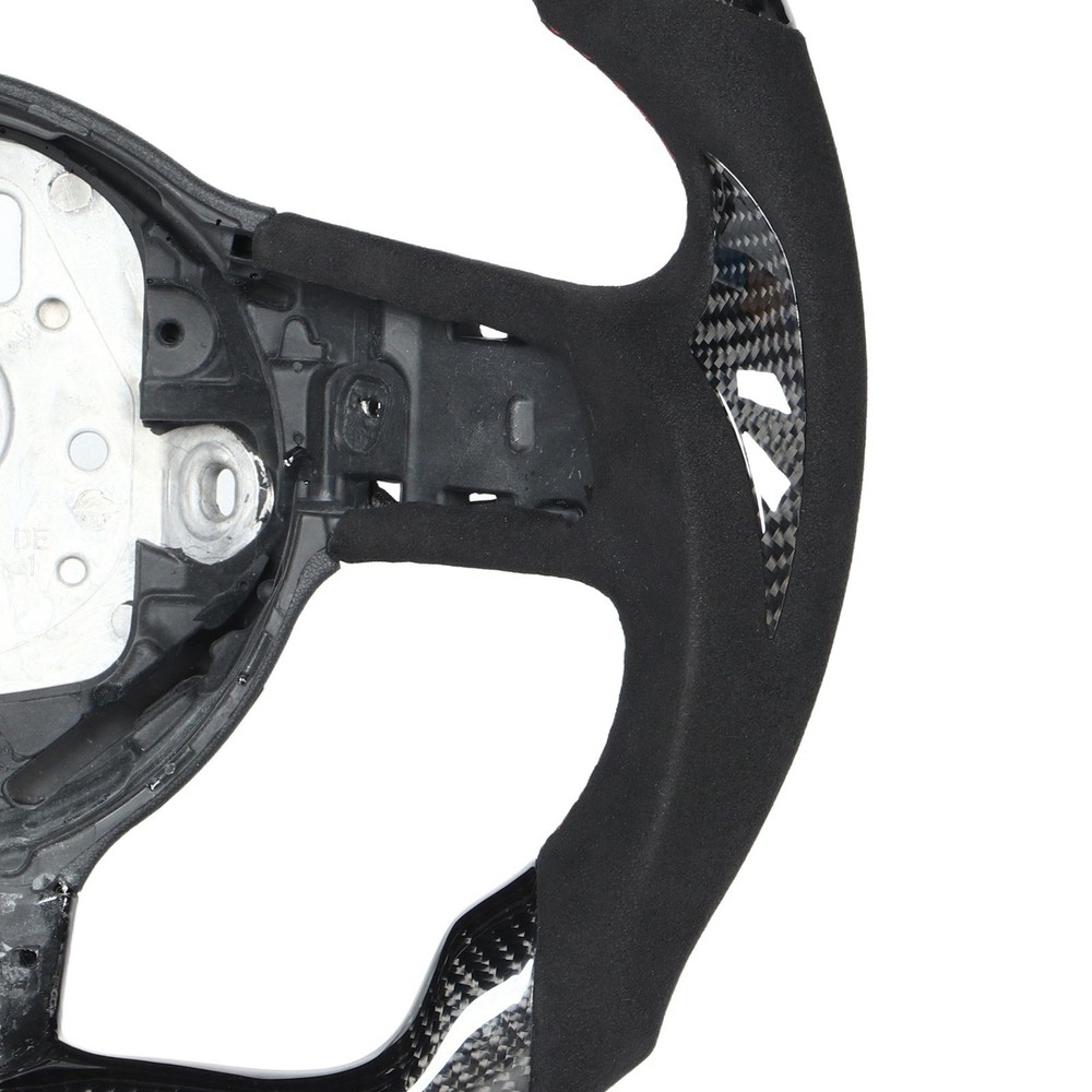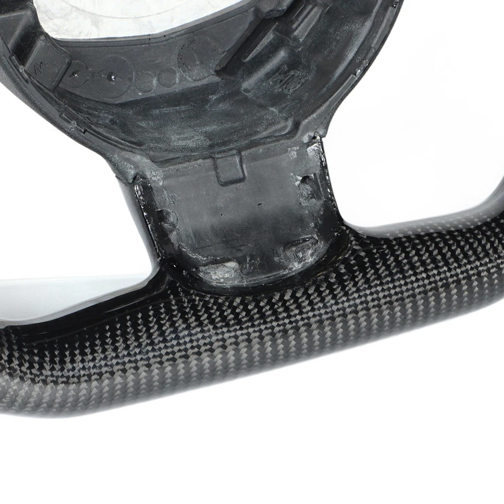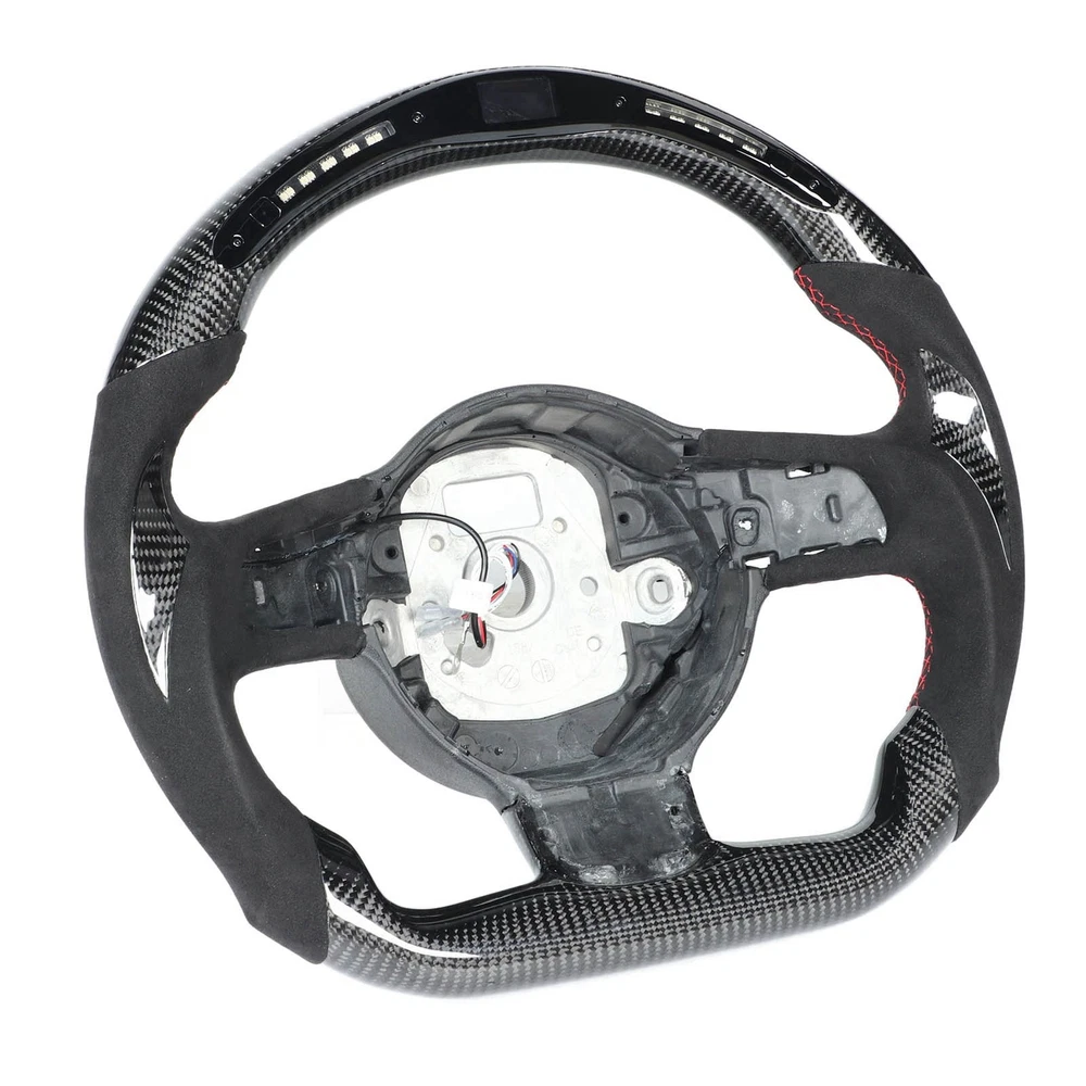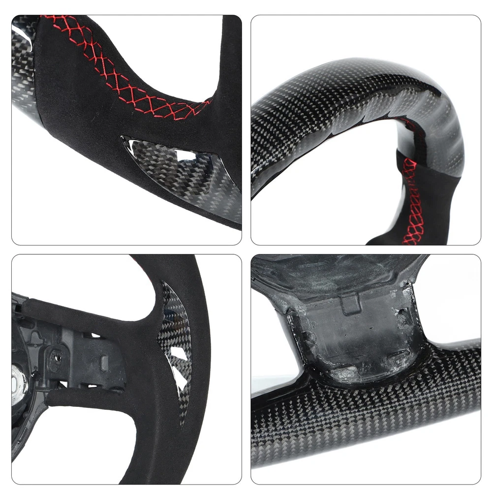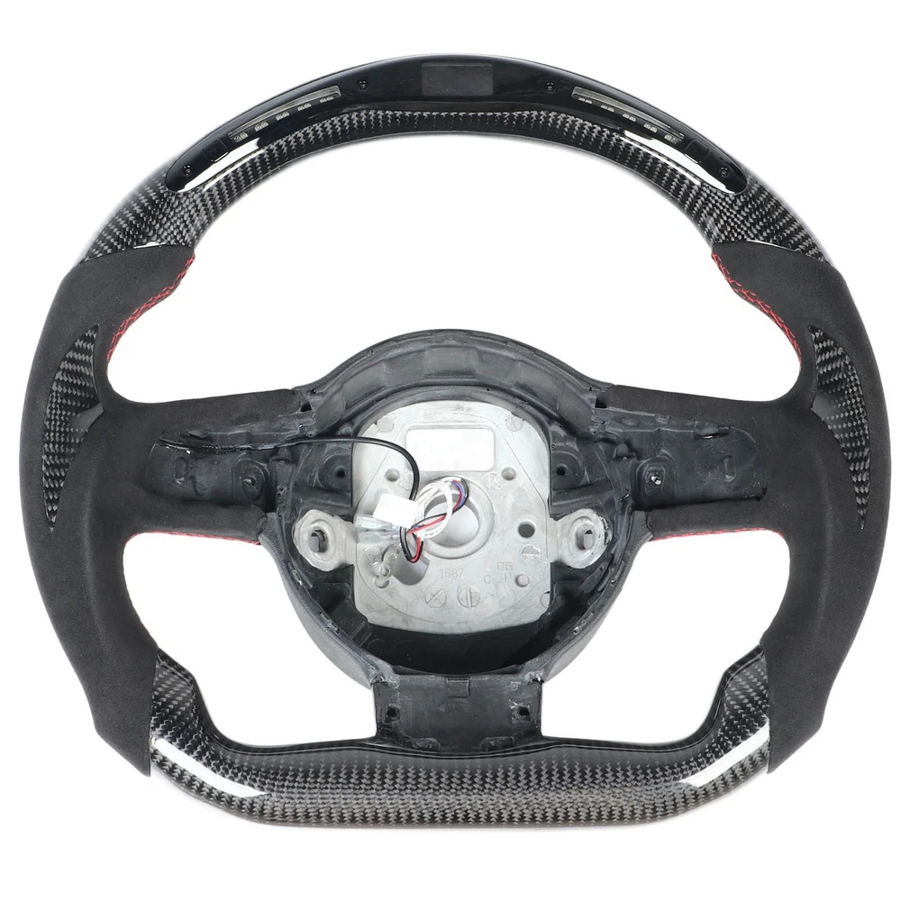 Feature: 1. LED Shift Light: LED shift indicator gradually turns green with the increase of engine speed. Once the user configured RPM is reached, the indicator will flash red as an upshift reminder. 2. Adjustable RPM and Color: LED shift indicator, adjustable from 500 RPM to 9900 RPM, supports RGB color adjustment. It also has shift indicator 0‑60 mph quarter mile and lap time lateral and longitudinal acceleration values, and displays efficient dynamics data. 3. Multi Fnction: LED performance steering wheel, you can read real time data from the display embedded in the steering wheel, such as Speed, RMP, LAP, engine load, water temperature, voltage and etc. 4. Real Carbon Fiber: 3K glossy carbon fiber, coated with 1mm thick epoxy resin coating, has strong anti oxidation protection, high heat resistance, symmetrical and uniform carbon fiber structure, and no twisted structure. 5. Excellent Grip: The flat bottom design also increases leg space for drivers, providing excellent grip at any temperature, even in extreme driving situations. Specification: Item Type: Car Steering Wheel Material: Glossy Carbon Fiber + Suede LED Shift Indicator Race Display: 20 LEDs Light Steering Wheel Stitching: Red Steering Wheel Hand Grips: Suede With Black Carbon Trims Steering Wheel Shape Bottom: Flat bottom D type Racing Design Finger : YES Paddle Shifter Holes: Yes Technical Parameter: Working Voltage: 12V-16V Working Frequency: 2.4GHz Working Current: Motherboard <40mA, Display <25mA Quiescent Current: 3mA Sensing Distance: Approx. 10m/10.9yd Applicable Temperature: -40℃-+85℃ Main Functions (LCD Display) 1. Fuel consumption breakdown 2. Steering wheel angle perception 3. Dynamic steering transmission 4. Time record 5. Dynamic speed sensing 6. Racing mileage record 7. Engine information presentation 8. Specific information setting 9. Estimated mileage 10. Turbo display Fitment: Replacement for 42 2007-2015 Replacement for TTS 2006-2014 Package List: 1 x LED Steering Wheel 1 x OBD2 Smart Module 1 x OBD2 Wiring Harness 1 x Manual Note: 1. It is strongly recommended to install and upgrade by a professional mechanic. 2. If you have any questions during the installation process, please consult our customer service in time, and we will handle all problems for you. 3. Support to customize the steering wheel of any style, color, material, and any model, please contact customer service.