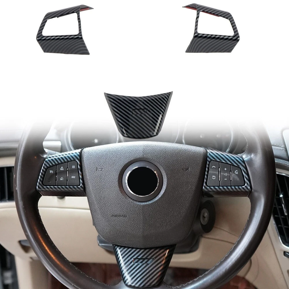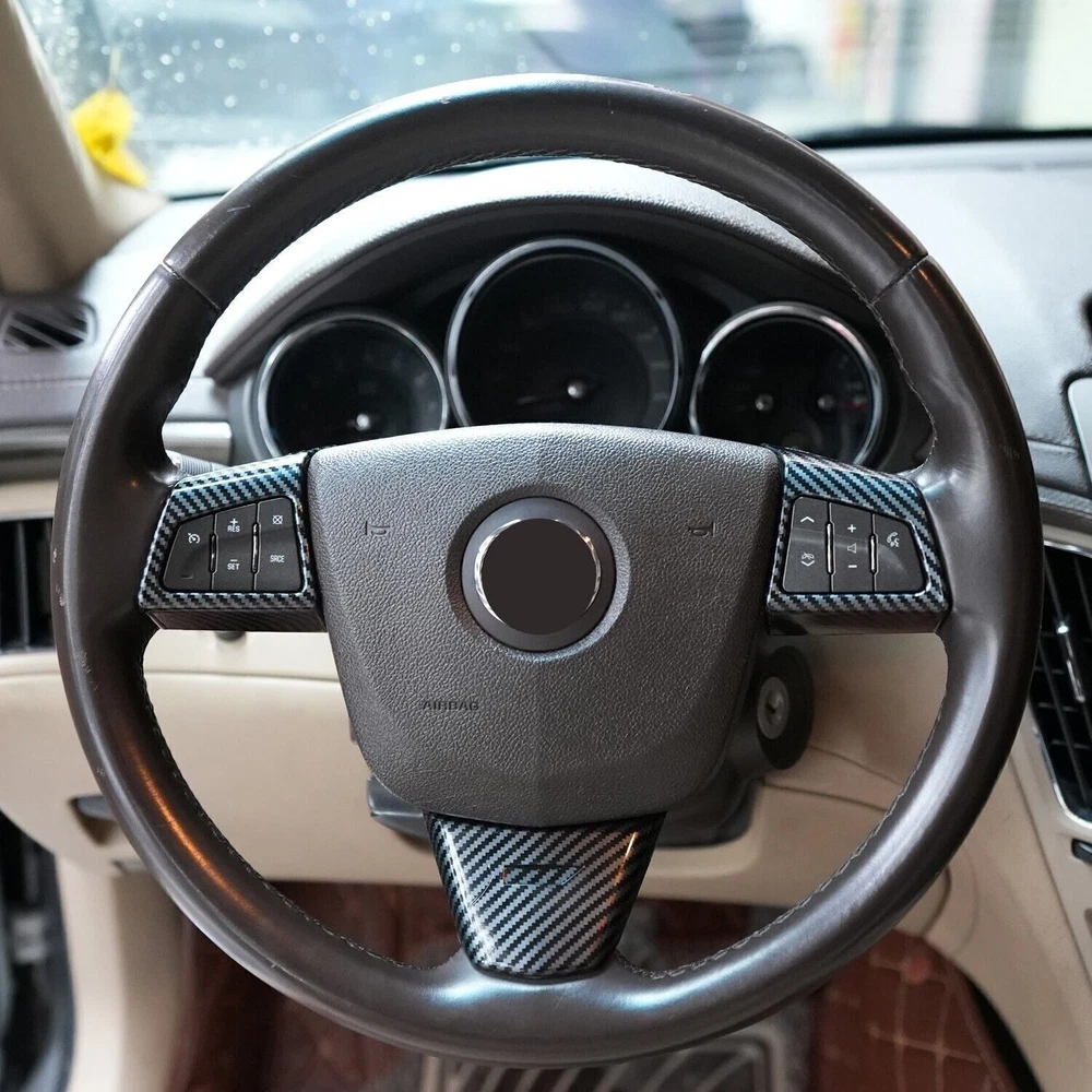 Carbon Fiber Look Steering Wheel Button Cover Trim For Cadillac CTS 2008-2013