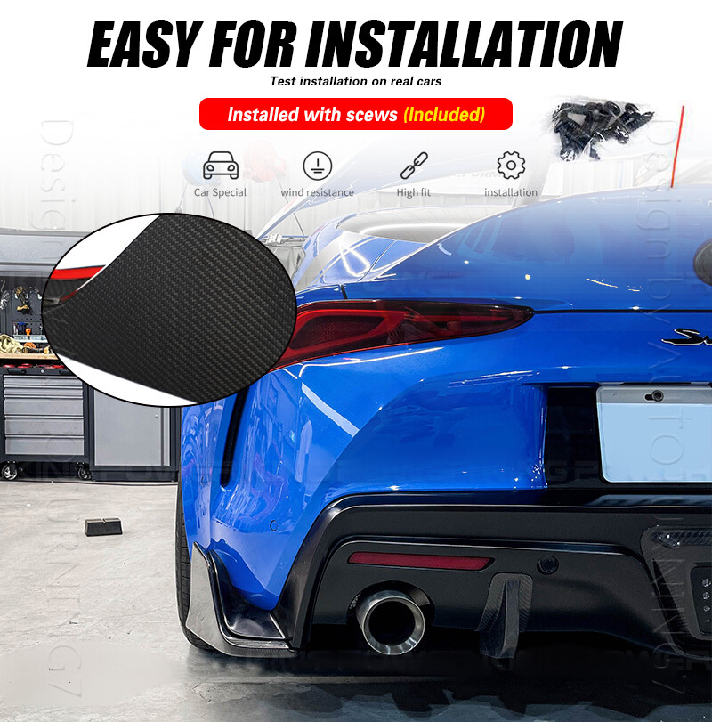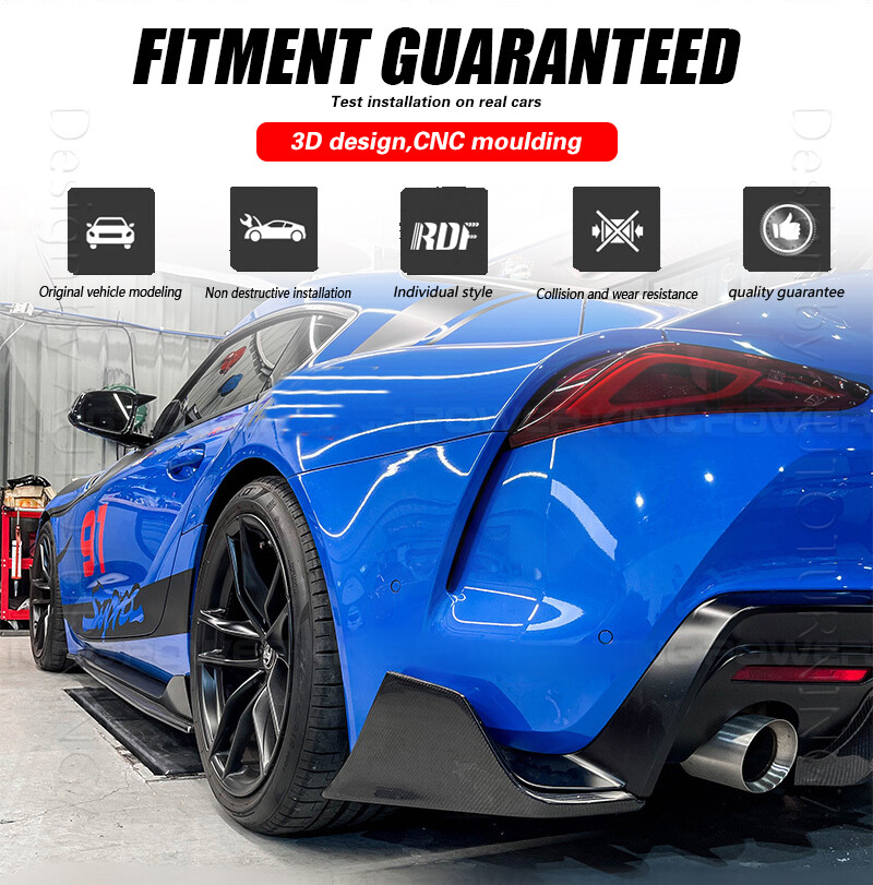 Fitment: Fit for Toyota GR Supra 2020-2024 Specifications: Product Name: Rear Bumper Splitter Material: Carbon Fiber Features: • Made of High Quality Lightweight Carbon Fiber. • Improve the aerodynamic characteristics by enhancing the transition between the high-speed airflow below the vehicle and the free airflow in the surrounding atmosphere. • Provide space for the airflow under the vehicle to decelerate and expand, thereby providing pressure recovery by providing a degree of "wake fill" or more accurately. • Does not cause excessive airflow separation and resistance and keep driving safety. • Sport style rear diffuser, perfect for decoration, increase both road safety and racing style. Package included: • 2pcs rear splitters • Mounting Accessories Carbon Fiber Rear Bumper Lip FOR Toyota The Rear Bumper Lip is one of the simplest mods you can do to the exterior of your car that will give your car that completely different look. Not only are spoilers meant for great looks, they also help Prevent the rear of the car from scratching. Fitment: Fit for Toyota GR Supra 2020-2024 Specifications: Product Name: Rear Bumper Splitter Material: Carbon Fiber Features: • Made of High Quality Lightweight Carbon Fiber. • Improve the aerodynamic characteristics by enhancing the transition between the high-speed airflow below the vehicle and the free airflow in the surrounding atmosphere. • Provide space for the airflow under the vehicle to decelerate and expand, thereby providing pressure recovery by providing a degree of "wake fill" or more accurately. • Does not cause excessive airflow separation and resistance and keep driving safety. • Sport style rear diffuser, perfect for decoration, increase both road safety and racing style. Package included: • 2pcs rear splitters • Mounting Accessories Delivery details Payment and TAX Return Policy Warranty Contact us Delivery details NOTE: The shipping fee is only for the mainland of each country, it does not include the overseas territories, such as Virgin Islands (U.S.) , Puerto Rico, Hawaii , French Reunion Island, etc. But on ebay, when buyers from Puerto Rico and overseas territories , the shipping fee is equal to United States, it is NOT correct,. please contact us for correct shipping fee, or we will cancel the order. Sorry for the inconvenience, and thanks for your cooperation. 2. If you want to upgrade the shipping, please contact us before making payment, we will revise the shipping fee. 3. We will ship according to your Ebay address. Please make sure it is correct and include phone number for delivery. If you want to know the exact shipping time , please contact us . Payment and TAX 1.We accept Multiple Payment Methods Available: Credit Card, Debit Card, Gift Card, Apple Pay, Goggle Pay, PayPal and PayPal Cred. 2.Please leave note for your special request (e.g. Colors or Size) in ebay note when you pay the order. 3.Your must complete the payment within 7 days or Ebay will automatically open unpaid item case For US Buyer:The invoice value of each item is less than 800USD ,so you no need to pay any tariff . NON-US Buyer Note: Most countries are tax free based on our invoices, if tax is required, which will be buyer's responsibility. Return Policy 1.Customer satisfaction is our top goal. We believe our items are so outstanding. All products are quality checked. They are new and in good condition when shipped to our customers. We are convinced you will be happy with your Purchase. 2.If product is defective or damage upon arrival, or wrong product shipped, please contact us immediately. Returns accepted within 30 days of delivery date and item must be in original new condition, not worn or altered in any way with attached tags & wrap. Otherwise deal is final. Return shipping must be paid by buyer. Please always contact us to resolve any problems, we will do our best to satisfy you. Thanks very much. Warranty 30 Days Money Back It is our goal to provide 100% satisfaction and peace of mind to our customers. If you are not satisfied with the products for any reason within 30 days of receiving the item. (Items must be not opened in their original package. Any mark of installation, mounting, cutting, scratch or using will not be allowed.) Please be free to contact us first if you have any problems.thanks. Contact us 1.We are trying our best to explain all details of the products here! If you have any question, please feel free to contact us by Ebay message, and We will get back to you within 24-48 hours. 2.Customer satisfaction is our NO.1 priority. If you are not happy with the item that you purchase, please contact us first. We will try our best to solve the problem with you.Please leave us a positive feedback if you receive the item.Please do not leave negative or neutral feedback without any contact.If you haven't received item in 30 days, please contact us and we will arrange refund.We appreciate your business.Happy Bidding & Have a nice day! 3.Working hours: From 8 a.m. to 6 p.m. from Monday to Friday. From 8 a.m. to 12 a.m. on Saturday morning Holiday/Rest time: Saturday afternoon and Sunday