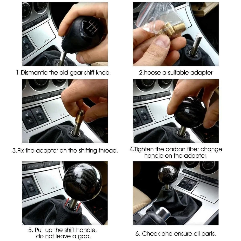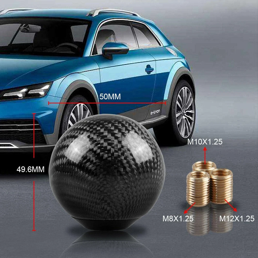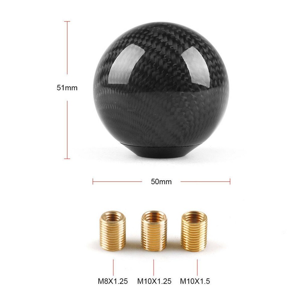 Features: 100% Brand New in the Box, Never Used!! Material: High quality real carbon fiber and aluminum Color: Black Carbon Fiber Diameter: approximately 2" Hole Diameter: 14mm/0.55" Fitment: 1) This black ball style carbon fiber gear shift knob for both manual transmission vehicles. 2) The thread of this real carbon fiber shift knob come with universal thread adapters which will fit most cars such as Acura Honda Mazda Mitsubishi Toyota Scion Nissan Infiniti Subaru and more. Installation: 1.Remove the Original Shift knob 2.Select the Suitable Adapter for Shift Knob in the 3 Adapters 3.Screw the Adapter on the Thread of Gear Shifter 4.Screw the Shift Knob on the Adapter Package Included: 1x Carbon Fiber Ball Shift Knob 3x Adapter eBay Cross Border Trade powered by ChannelEffect