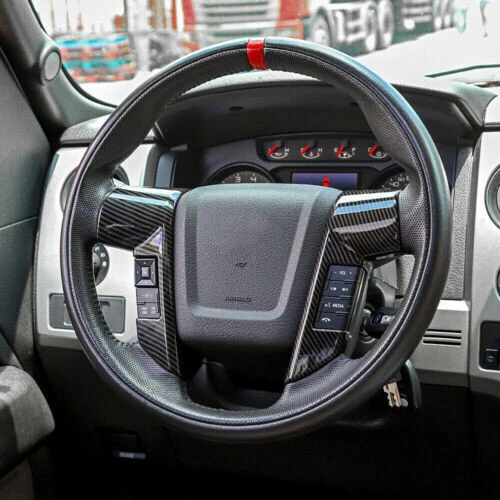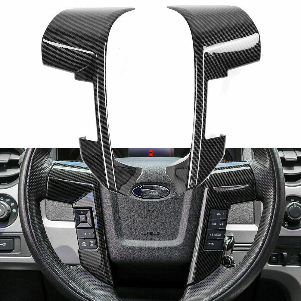Carbon Fiber Steering Wheel Trim Cover Interior Parts for 09-14 Ford F150 Raptor