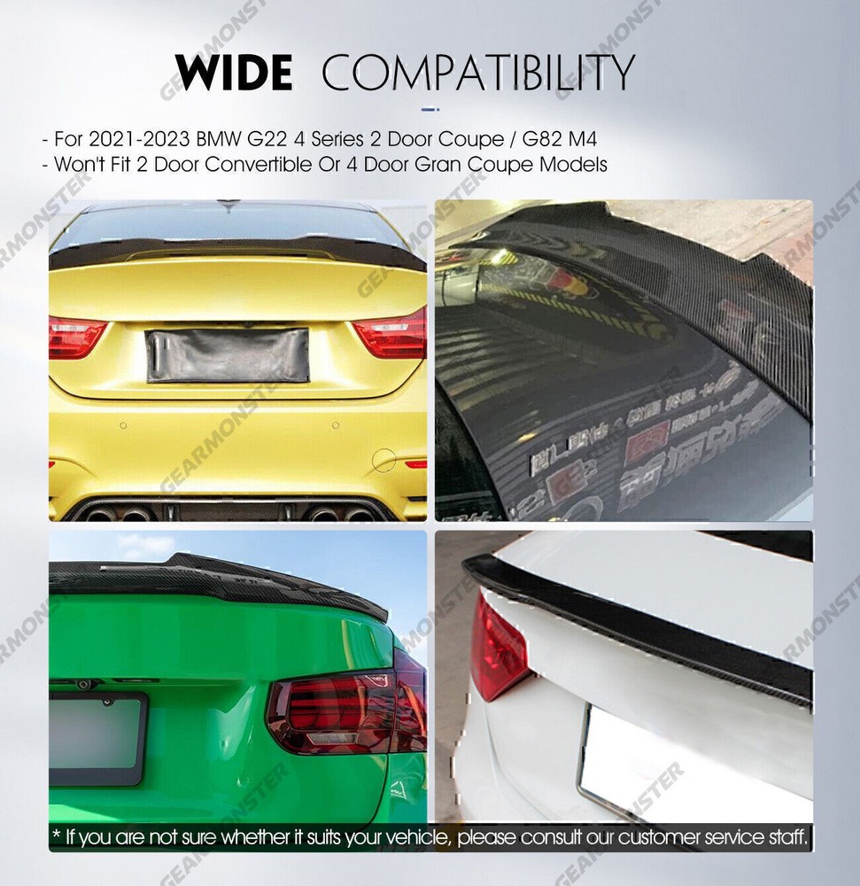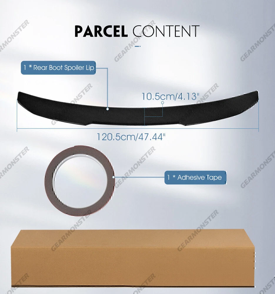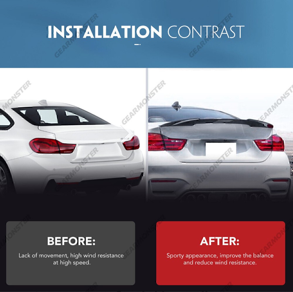 This carbon fiber spoiler wing gives my BMW 4 Series an ultra-sleek, sporty upgrade—perfect fit, lightweight yet durable, and the matte finish looks incredibly premium. Installation was simple, and it totally transforms the rear profile with an aggressive, race-inspired look. Worth every penny for that added touch of luxury and performance style!