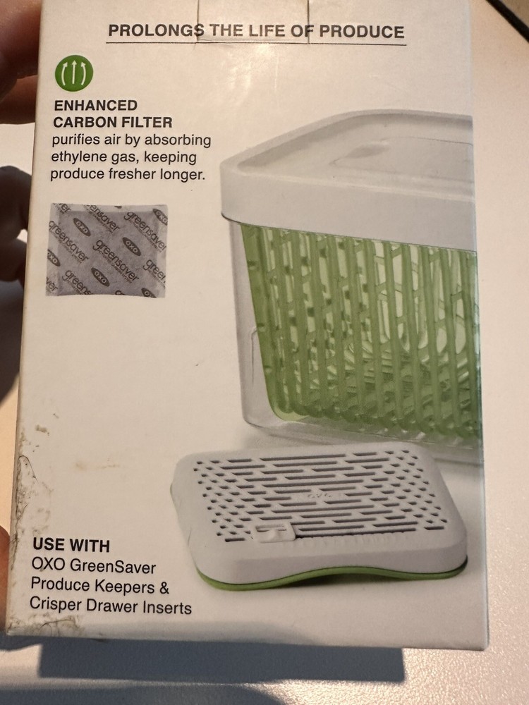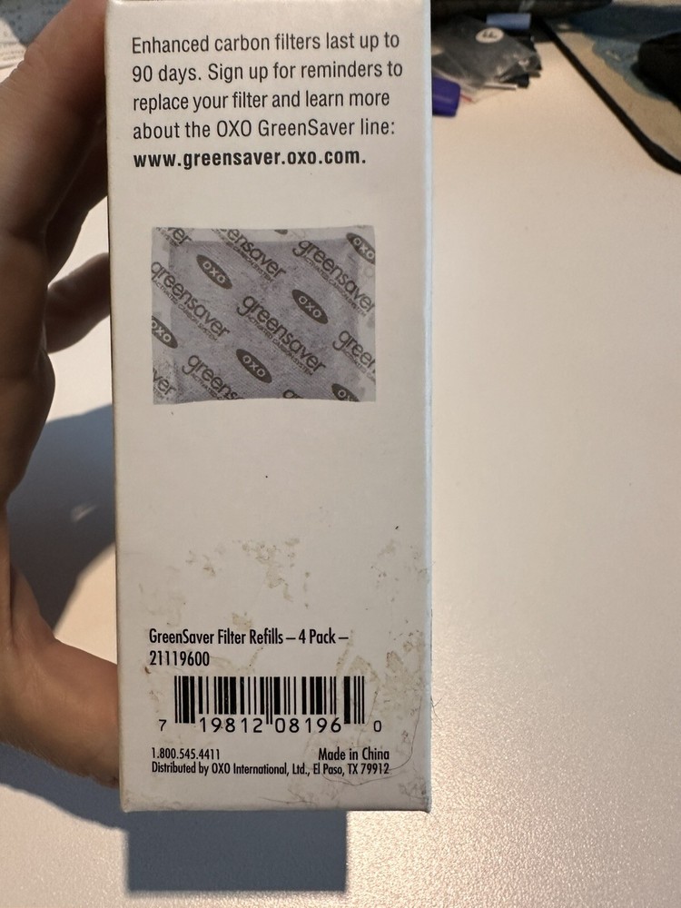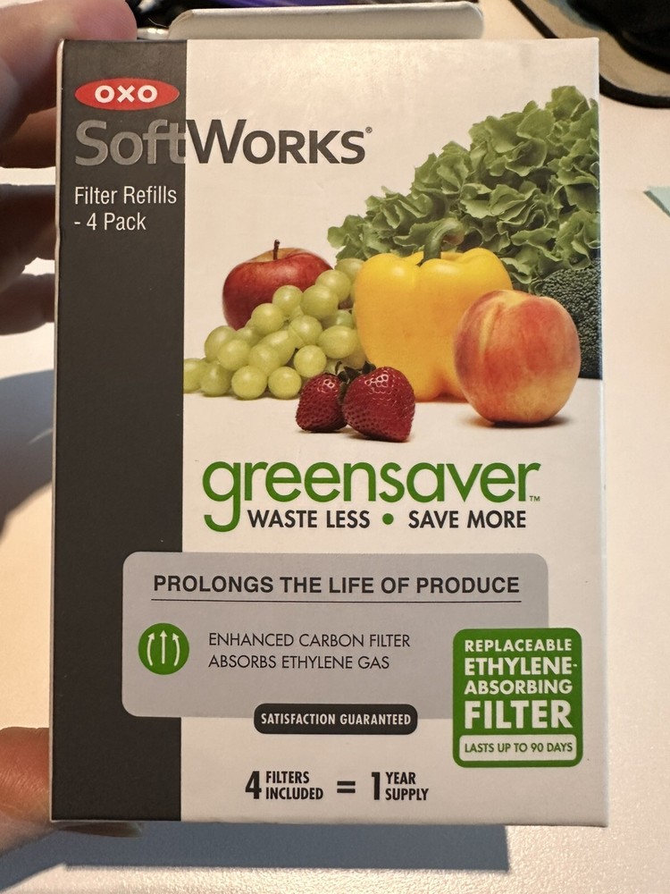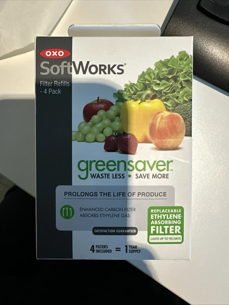 The OXO Carbon Filter Refills in a set of 4 provide a one-year supply for the Good Grips GreenSaver. These rectangle-shaped filters have dimensions of 4.5 inches in height, 3.25 inches in length, and 1.5 inches in width. Manufactured in China, they come with a 4-year warranty. Perfect for maintaining freshness in food storage containers.