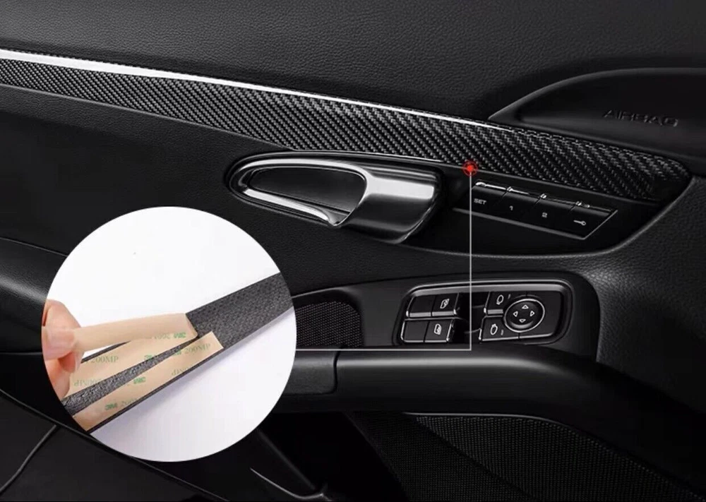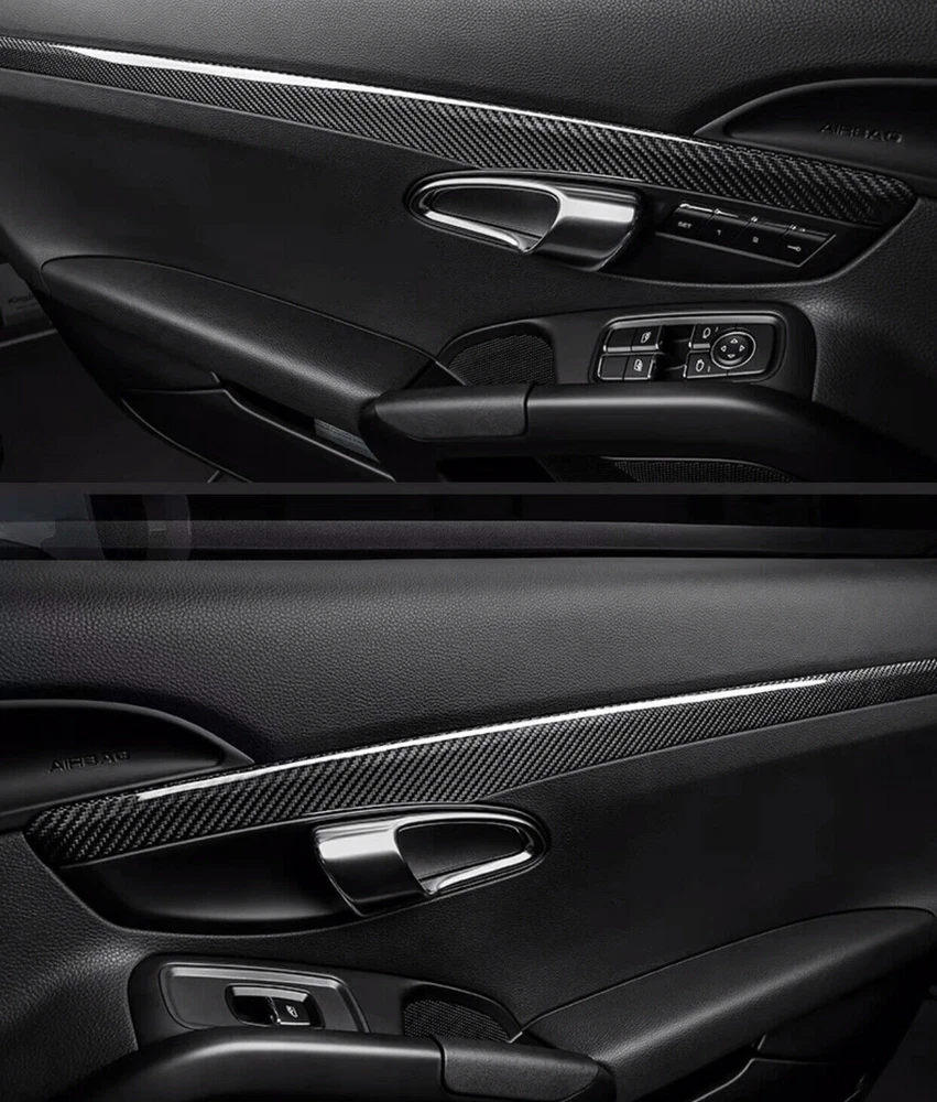 Carbon Inner Door Panel Trim Strips For 718 911 Porsche Boxster Cayman GT3 Turbo Carbon Fiber Car Door Panel Decorative Trim For Porsche 911 718 Boxster Cayman Interior Door Side Panel Molding Trim for Porsche 718 981 Boxster Cayman 2013-2020, 911 2013-2018 Material by pure dry real carbon fiber. The price includes: 2 pieces. Fitting: 1. Remove all dust and grease from the application area. 2. Use 3M General Purpose Cleaner and Wax Remover or other mild solvent, such as White Spirit applied with a clean cloth. 3. Indirectly heat the trim cover and car bodywork using a hairdryer to 30 degrees Celsius, in order to achieve an improved instant bond. 4. Remove outer covering from tape to expose sticky side. 5. Apply molding (with tape applied) to the desired area of the car body. 6. Buff down hardly after applying. 7. 24 hours before washing your car. Payment Delivery details Terms of sales About us Contact us Payment We accept Paypal only. We only ship to your Paypal's address, please ensure your shipping address on your paypal account is correct. If you have any change for address, please inform us in ebay note. Payment must be fulfilled within 7 days after purchase. All non-paying orders will receive an unpaid reminder from eBay. Delivery details We will ship the goods as soon as we receive your payment.(usually within 5 business day). All items will be shipped to buyers E-bay address. If your E-bay address doesn't match the desired delivery address, please contact us immediately. The estimated delivery time is 8-16 business days for the US. However, for certain European and South American countries, it may take up to 6-8 weeks due to thorough customs inspections. We offer worldwide shipping. If you plan to purchase multiple products at once, please contact us. Terms of sales Items can be returned within a 30-day period. Please make sure that the item is unused, in its original packaging, and in the same condition as when you received it. To initiate a return, please get in touch with our customer service team and provide them with the necessary details, including the order number, reason for return, and any supporting documentation (such as photos or videos, if applicable), before initiating a return request. The cost of return shipping will be the responsibility of the customer, unless the return is a result of a defect or an error on our part. For a secure return, we recommend using a reliable shipping method with tracking. Refunds will be processed through the original payment method. Please allow one business day for the refund to be reflected in your account. If the item you received is damaged or faulty, please notify us immediately. We may require additional information or evidence to facilitate the return or exchange process. About us Feedback is important to all of us participating in the eBay community. We have been working hard and strive for 100% customer satisfaction. We will leave a positive feedback immediately after payment is received. We appreciate a positive feedback as much as you do. If for some reason there is any issue with the purchase,please contact us prior to leaving feedback. We will be glad to work together and provide a satisfying solution. Contact us If you are not satisfied with our products or services, please contact us before leaving negative feedback. Good communication helps buyers and sellers to solve any problems. We are promising to try our best to provide the best service and 100% satisfaction for valuable buyer like you.