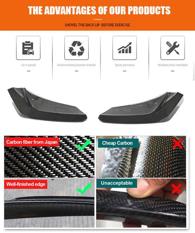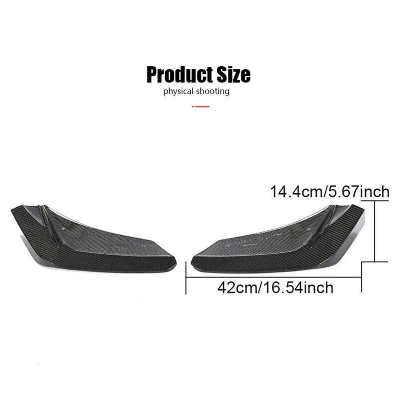 Fitment: Fits for Chevrolet Corvette C8 Stingray Coupe Convertible 2-Door 2020-2022 Specifications: Product Name: FRONT BUMPER SPLITTERS Material: Carbon Fiber Package Size: 72*23*17cm Package Weight: 1.78kg Features: Super light Weight and Durable. UV-Protective Clear Coated: Fade & Rust Resistant. No Modification or Cutting Required. Direct Add-On Application.Only Clean And Stick On. Directly Goes Over the 2 Valance On The Front Bumper Quality 3K Weaven Carbon Fiber Cover with Hard UV-Protected Coating. Improves Appearance and AeroDynamic All at Once. Package included: 2 x Splitters with screws Fitment: Fits for Chevrolet Corvette C8 Stingray Coupe Convertible 2-Door 2020-2022 Specifications: Product Name: FRONT BUMPER SPLITTERS Material: Carbon Fiber Package Size: 72*23*17cm Package Weight: 1.78kg Features: Super light Weight and Durable. UV-Protective Clear Coated: Fade & Rust Resistant. No Modification or Cutting Required. Direct Add-On Application.Only Clean And Stick On. Directly Goes Over the 2 Valance On The Front Bumper Quality 3K Weaven Carbon Fiber Cover with Hard UV-Protected Coating. Improves Appearance and AeroDynamic All at Once. Package included: 2 x Splitters with screws