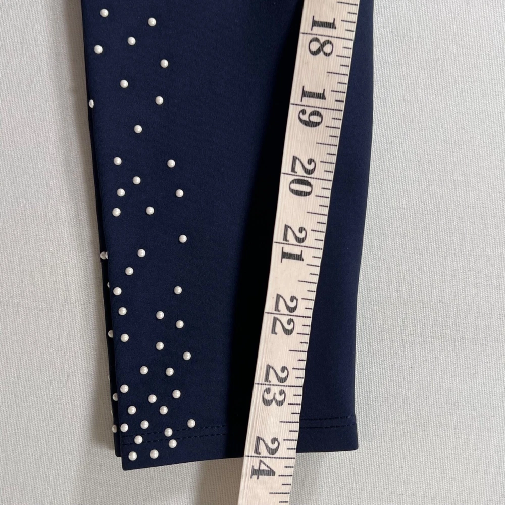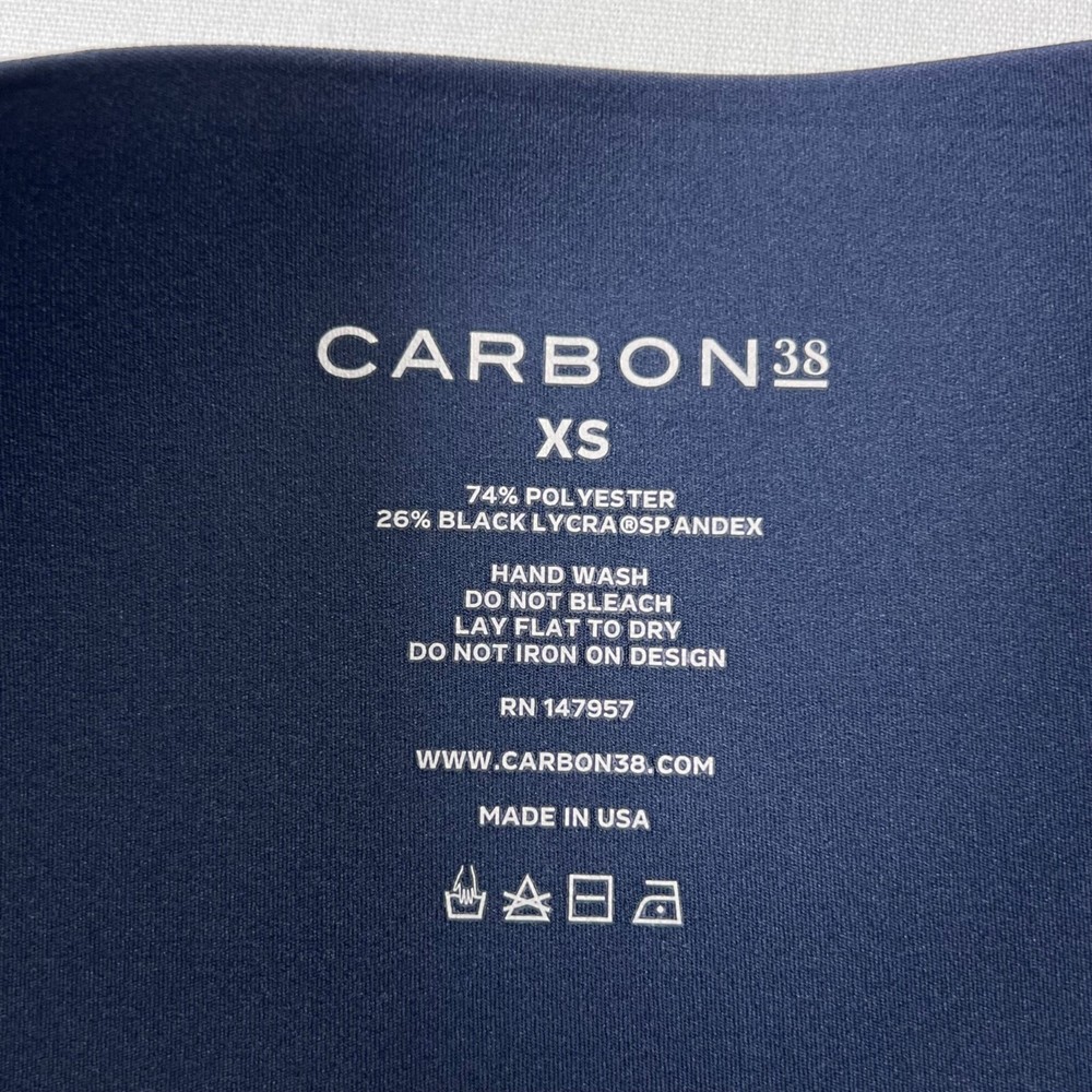 ***See my other listings for the matching sports bra! Brand: Carbon38 Item Details: Faux pearl embellishments Made to withstand high-intensity workouts Ultra supportive leggings High rise Wide waistband Sweat-wicking UPF 50 Color(s): Navy Blue Condition: New with tags Material: 74% Polyester / 26% Black Lycra Spandex Marked Size: X-Small ** See measurements Measurements: Measurements are taken seam to seam when possible, with the item lying flat and not stretched. Items may not be true to size label (especially if it is denim or vintage), please refer to the actual measurements listed to assist you with fit. NOTE: Not all designers follow the US standardized sizing chart. Waist: 9 1/2" flat across Rise: 9" Inseam: 24” Terms of Sale Your purchase is very much appreciated. We want this to be an enjoyable experience for both you and us! We'd love for you to be a happy repeat customer! Thank you for your support of our small business. Payment: We can only ship to the address on file with eBay. For auction/best offer items, please pay within 2 days of auction's end. Buy It Now purchases require immediate payment. Returns Not Accepted: All sales final. We do our best to inspect our items thoroughly and to describe them accurately with measurements, pictures and details. Please refer to all and ask any questions prior to bidding/buying. We do not offer returns for items that don't fit or if you decide you no longer want it. That being said, we do stand behind everything we sell for accuracy of description. Item # 583G Yoga Gym Fitness Workout Running Travel Athletic Sophisticated Country Club