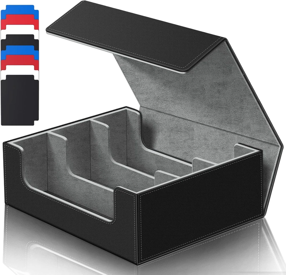 Included Components: Card Dividers Batteries Required?: No Water Resistance Level: Waterproof Number of Compartments: 8 Number of Items: 1 Type: Does not apply Brand: Does not apply Special Features: Portable Material: Leather Color: Black&Grey Material Feature: durable leather Shape: Rectangular UPC: 7445055080097 Closure Type: Magnetic Item Weight: 1.65 pounds Opening Mechanism: Hinge Number Of Pieces: 8 Product Dimensions: 11.49"L x 10"W x 4.2"H Batteries Included?: No Part Number: 001 Country of Origin: China Style: Rustic gtin13: 7445055080097 Item Package Quantity: 1 Occasion: Christmas Unit Count: 1.0 Count Special Feature: Portable Recommended Uses For Product: For Trading Cards Item model number: 001