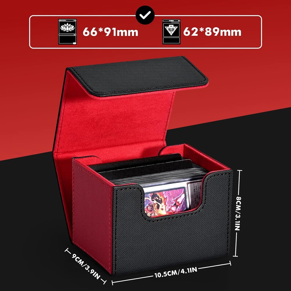 ๐ฃ๐ฟ๐ฒ๐บ๐ถ๐๐บ ๐ค๐๐ฎ๐น๐ถ๐๐๏ผPremium mtg card deck box has two-layer construction, the outer layer that is plasticized water-resistant PU leather material, and the inner layer has a soft microfiber material to protect the cards inside. This box is better than the basic boxes made of single-sheet PVC-type material. Made from archival-safe, non-PVC material, the ZLCA Card Deck Box is the perfect way to store your cards. ๐๐ถ๐ด๐ต ๐๐ฎ๐ฝ๐ฎ๐ฐ๐ถ๐๐๏ผCompared with the traditional plastic card box, the durable leather card deck box gets an upgrade, and offers more room for your cards. Specially designed for Commander EDH players, but also for all regular decks with extra cards or tokens. Designed to hold 100+ double-sleeved cards or 120+ single-sleeved cards. If you donโt sleeve cards and use this for non-premium cards/games, this will hold over 200 cards. ๐ฆ๐๐ฟ๐ผ๐ป๐ด ๐ ๐ฎ๐ด๐ป๐ฒ๐ ๐๐ฒ๐๐ถ๐ด๐ป๏ผTight stitching and 8 powerful magnets keep the card deck case secure during transport. Even when fully loaded and turned upside down, the card holder case stays tightly closed at all times, no need to worry about losing your precious cards. The stitching is clean and all corners look great and are glued well. ๐จ-๐๐ต๐ฎ๐ฝ๐ฒ ๐๐ฒ๐๐ถ๐ด๐ป๏ผThe box features a double-sided, wide-mouth U-shaped design. Even if the box is full of cards, you will be able to easily remove them all at once. The just-right design allows you to put and take cards with ease and without hindrance. ๐ ๐๐น๐๐ถ๐ฝ๐น๐ฒ ๐จ๐๐ฒ๐๏ผOur game card box holds your double-sleeved, KMC inners, Dragon Shield outers, and commander deck perfectly. Also compatible with Magic The Gathering, YuGiOh, and Cardfight Vanguard, Duel Masters, etc, a variety of TCG/CCG/LCG & other collectible cards. We highly, recommend giving these a try. Product Description ZLCA CARD DECK BOX Add to Cart Add to Cart Add to Cart Add to Cart Add to Cart Add to Cart Customer Reviews 4.7 out of 5 stars 669 โ 4.7 out of 5 stars 287 4.9 out of 5 stars 239 4.7 out of 5 stars 453 4.8 out of 5 stars 456 4.7 out of 5 stars 453 Price $9.99 $ 9 . 99 โ $24.99 $ 24 . 99 $13.49 $ 13 . 49 $23.99 $ 23 . 99 $14.99 $ 14 . 99 $12.99 $ 12 . 99 Dice Tray โ โ โ โ โ โ โ Product Size 4.1*3.5*3.1inch 3.2*3.1*4.1 inch 8.86*3.94*4.88 inch 3.9*3.2*4.3 inch 11.4*9.4*4.1inch 6.1*4.1*3.9inch 11.3*3.7*4.3inch Unsleeved Cards 220+ 200+ 600+ 200+ 2400+ 350+ 800+ Single-sleeved Cards 120+ 100+ 300+ 120+ 1800+ 200+ 600+ Double-sleeved Cards 100+ 80+ 200+ 100+ 1050+ 150+ 500+