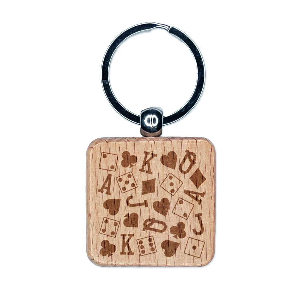 Card Suits and Dice Games Engraved Wood Square Keychain Tag Charm
