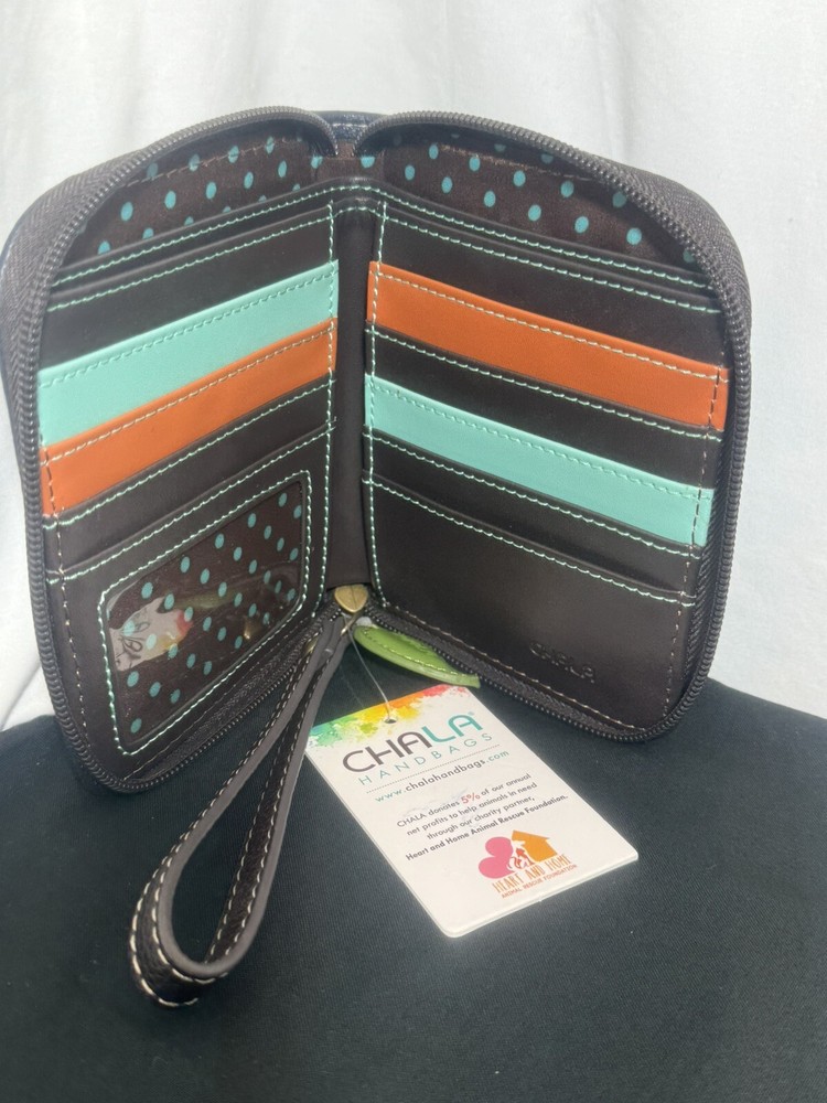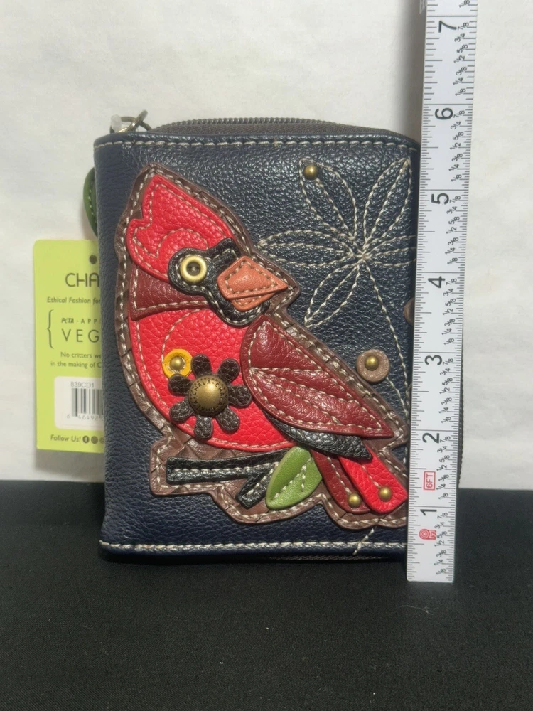 This Chala Handbags zip-around wallet in navy is perfect for bird enthusiasts. The wallet is made of faux leather and comes with tags attached. It features a unique bird theme, making it a stylish accessory for any outfit. The wallet is not specified as to brand, type, department, color, or material, but it is sure to be a great addition to your collection. Whether you're looking for a practical wallet or one that makes a statement, this Chala Handbags wallet is a great choice.
