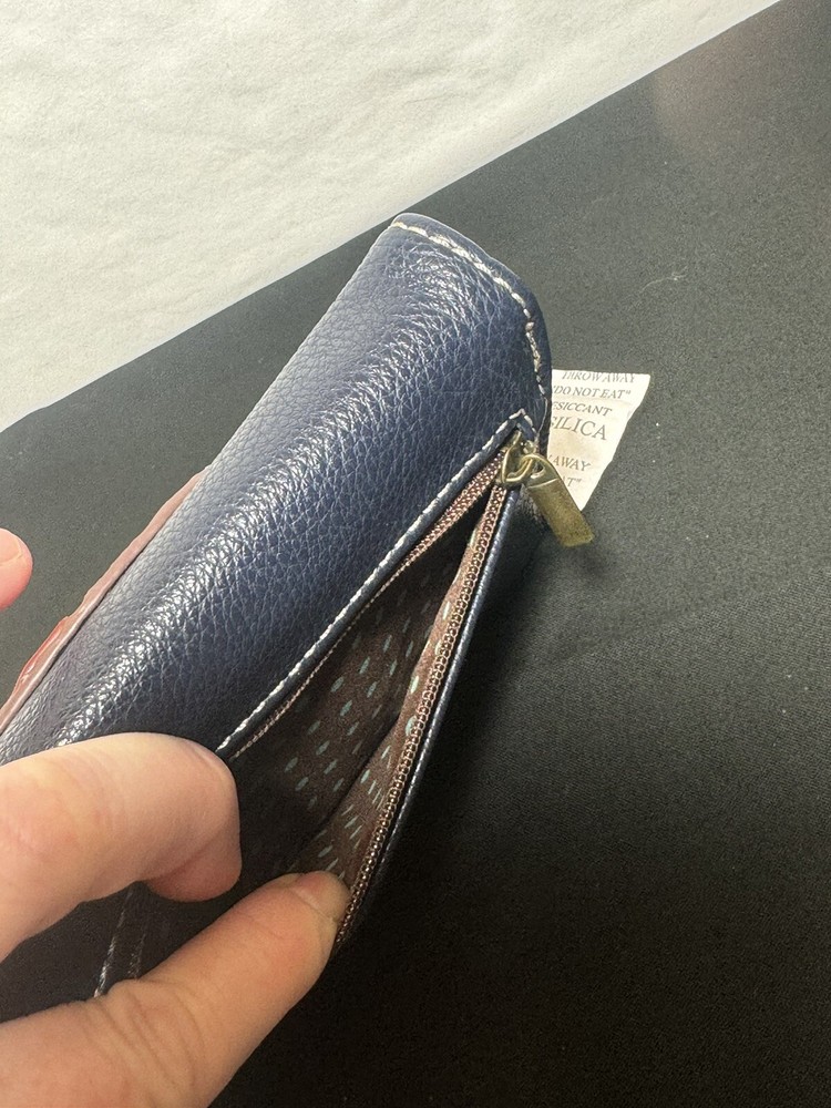 Cardinal Bird Navy Vegan Faux Leather Zip Wallet New With Tags