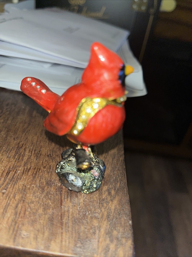 Vintage Betson Ceramic Trinket Box with Colorful Bird Fruit Design and Gold Accents