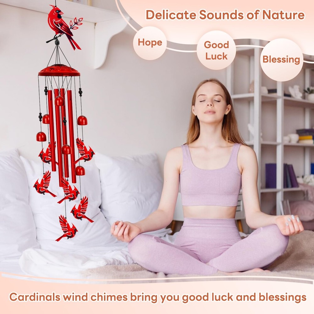 Cardinal Wind Chimes for Outside, Large Cardinal Garden Decor Bird Wind Chime, Memorial Cardinal Gifts for Women, 40" Outdoor Windchimes for Lawn, Porch, Patio, Yard, Christmas Cardinal Wind Chimes: This red cardinal wind chime features a striking design that adds a pop of color and charm to any space. Includes large cardinal ×1, “S” shaped hook ×1, small cardinals ×6, small bells ×6, corrosion resistant aluminum tubes ×4, top cover ×1. Melodious Tunes: Enjoy the soothing sounds of the wind as it gently plays with the delicate chimes, creating a calming and serene atmosphere. This outdoor wind chimes sounds like the wind whispering and makes your body and mind feel relaxed. Sturdy Cardinal Garden Decor: Handcrafted with care, this wind chime is made to last, ensuring long-lasting beauty and enjoyment. Rugged construction with excellent corrosion and weather resistance. Easy Installation: Hang this cardinal wind chime effortlessly in your garden, patio, porch, lawn, or balcony to instantly elevate your outdoor decor. Meaningful Decor: Perfect for bird lovers or anyone who appreciates nature, this cardinal decor makes a thoughtful and symbolic choice for women, mom, grandma and loved ones on birthday, Christmas, New Year's, Mother's Day. Wind Chimes for Outside Shipping We offer FREE shipping on all orders! We ship within Three business days of payment, usually sooner. We use a selection of shipping services such as UPS, FedEx, USPS etc. We only ship to the lower 48 states, no APO/FPO addresses or PO Boxes allowed. Local pickups and combined shipping options are not provided at this time. Return You can return a product for up to 30 days from the date you purchased it. Any product you return must be in the same condition you received it and in the original packaging. Please keep the receipt. Payment We accept payment by any of the following methods: PayPal Please pay as soon as possible after winning an auction, as that will allow us to post your item to you sooner! Feedback Customer satisfaction is very important to us. If you have any problem with your order, please contact us and we will do our best to make you satisfied. Contact Us If you have any queries, please contact us via ebay. We usually respond within 24 hours on weekdays. Please visit our eBay store to check out other items for sale! Thank you for shopping at our store.