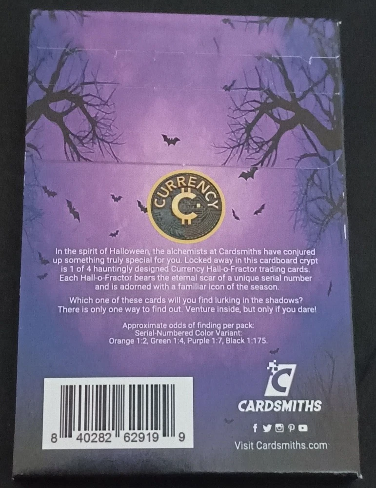 Set: hall-o-fracture Configuration: Pack Character: Brand Franchise: currency Year Manufactured: 2024 Manufacturer: cardsmiths Type: Non-Sport Trading Card