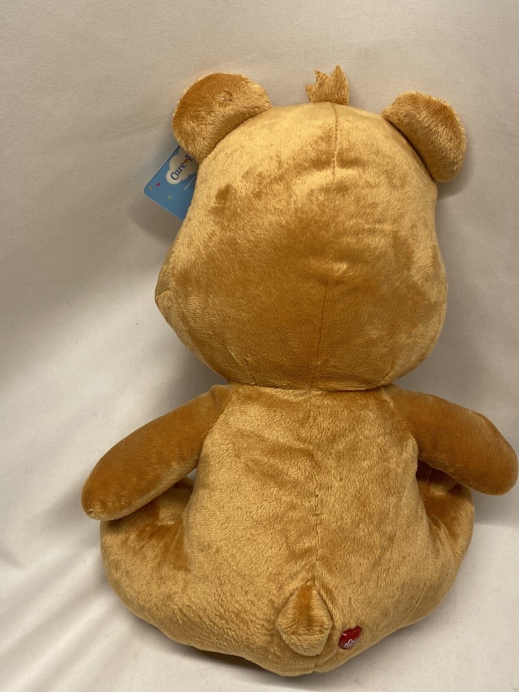 This is a Care Bears Tenderheart Bear plush toy measuring 15 inches. It features a red heart on its tummy, is part of the Care Bears franchise, and was manufactured in 2016. This limited edition stuffed bear is surface washable, representing the character Tenderheart Bear. It is a single unit item and not handmade, suitable for all occasions.