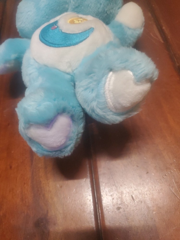 This Care Bears Bedtime Bear plush is a must-have for any fan of the beloved children's show. With its soft and cuddly blue plush material, it's perfect for bedtime snuggles or playtime hugs. This 13-inch bear is made by Kenner and is part of the 20th Anniversary collection by Carleton Cards. The bear's character is inspired by the popular Care Bears franchise, featuring the lovable Bedtime Bear character. The plush material is made of high-quality materials, ensuring durability and longevity. This bear is perfect for collectors or anyone looking for a special addition to their stuffed animal collection.