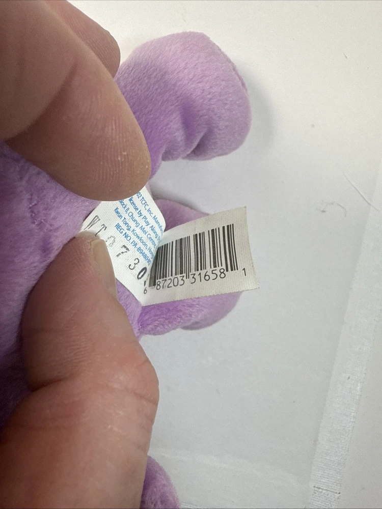 Care Bears Share Bear 8" bean bag plush purple bear, 2002 TCFC Play Along w/tags