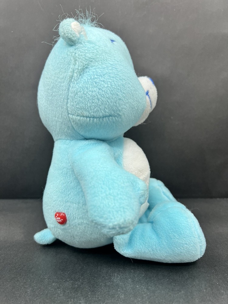 This Care Bears Bedtime Bear plush toy is perfect for anyone who loves the Care Bears franchise. The blue bear is 8 inches tall and made of soft plush material. It features a moon and stars theme, making it ideal for anyone who is a fan of celestial designs. The toy also comes with tags and was manufactured in 2002. It would make a wonderful addition to any Care Bears collection or a great gift for a Care Bears fan.