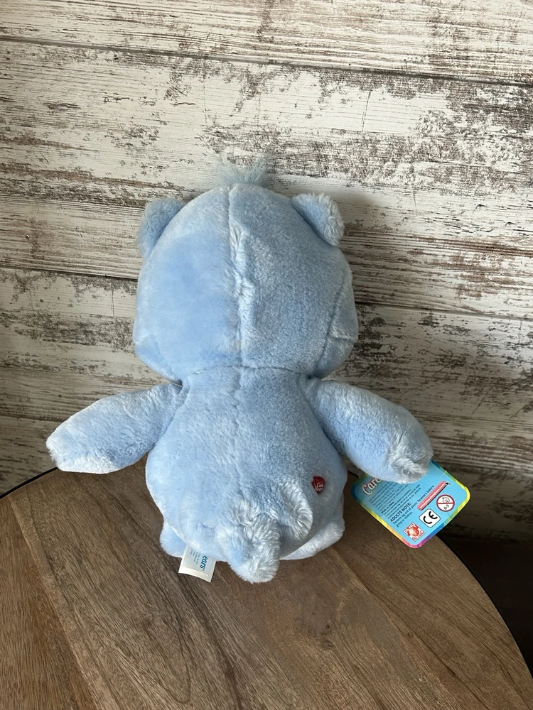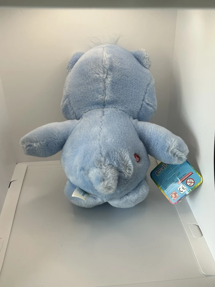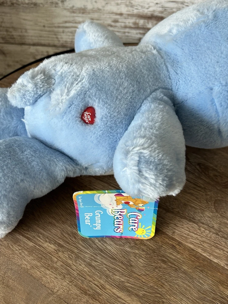 This Care Bears Grumpy Bear plush toy is a must-have for all bear collectors. With its blue bear color and rain cloud design, it is a unique addition to any collection. This 13-inch stuffed toy is made of high-quality materials and features Grumpy Bear's classic grumpy expression. The toy is brand new with tags and was manufactured in 2002. It is an original and licensed reproduction, and is perfect for all occasions. This Care Bears Grumpy Bear plush toy is a great gift for any bear lover, and will provide hours of enjoyment.