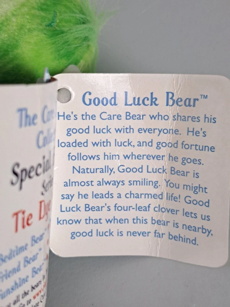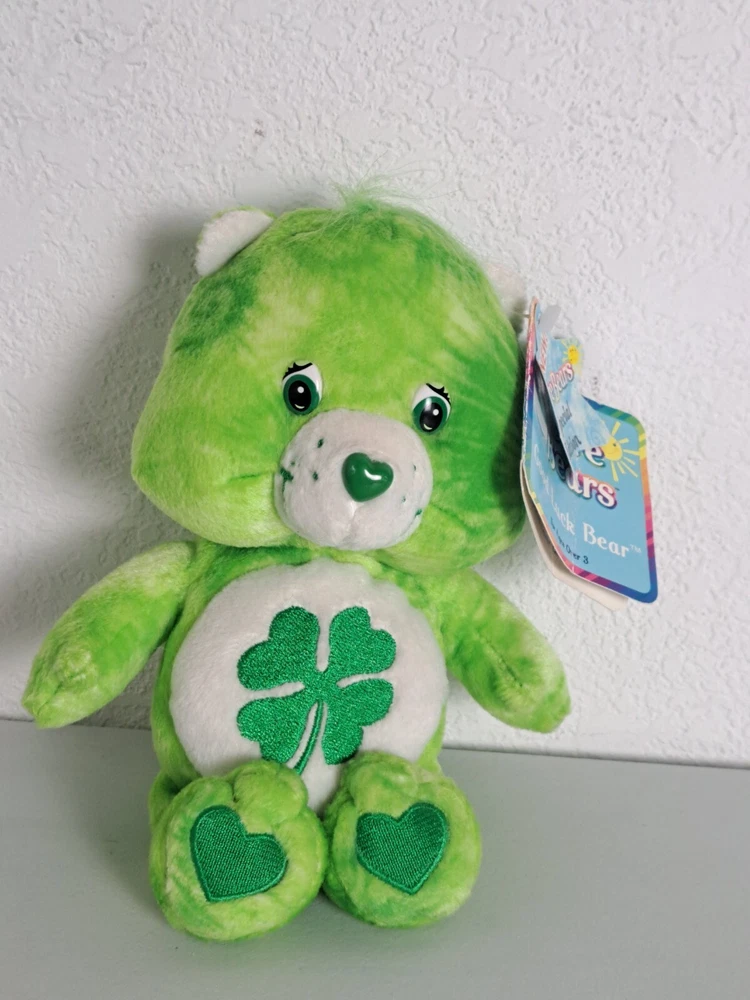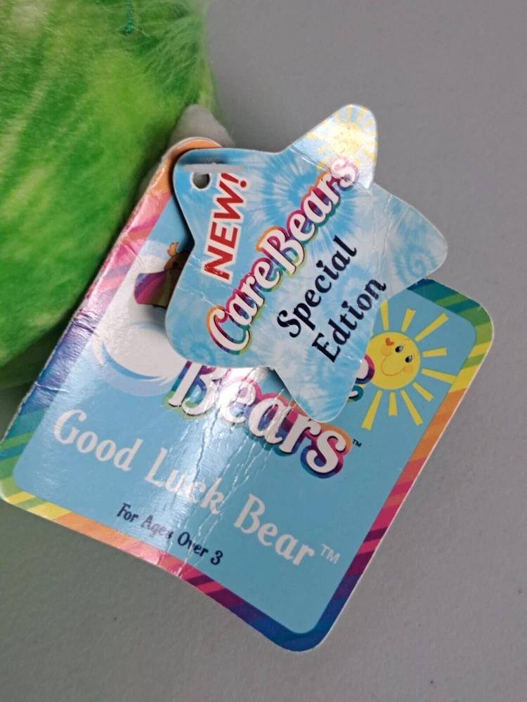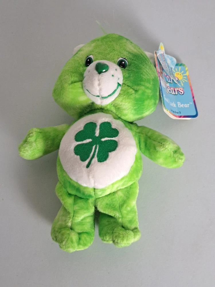 Material: Plush Bear Color: Green Original/Licensed Reproduction: Original Year Manufactured: 2002 Brand: Play Along Country/Region of Manufacture: China Unit of Sale: Single Unit Franchise: Care Bears Size: 8 in Type: Plush Bear Collection: Special Edition Item Length: 8 in Character: Good Luck Bear Occasion: All Occasions Time Period Manufactured: 2000-2009 Eye Color: Green & Black Number of Items: 1 Theme: Care Bears Plush Packaging: Without Packaging Animal Species: Bear Antique: No