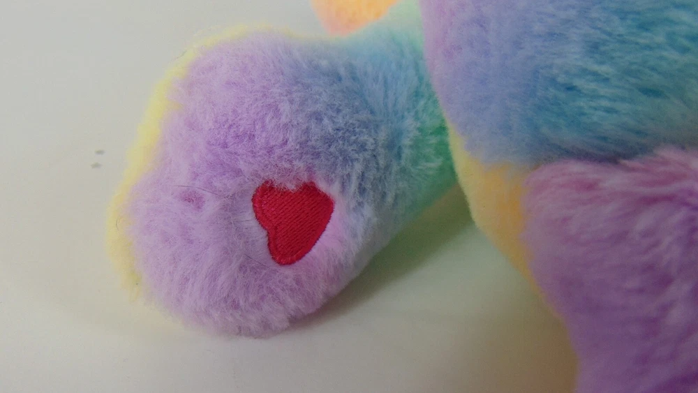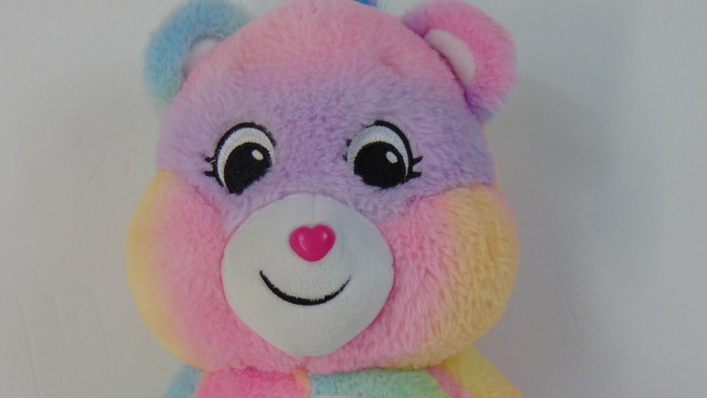 This adorable Care Bears plush is so soft and huggable—perfect for fans of all ages! The vibrant rainbow heart design is super cute, and the included Pez dispenser is a fun bonus. Arrived in great condition, well-packaged, and smells fresh. Love the cheerful colors and high-quality stitching—definitely a must-have for collectors or as a sweet gift!