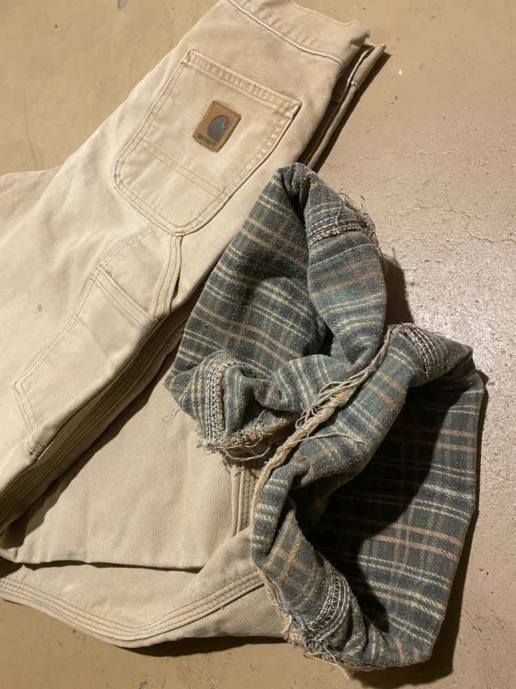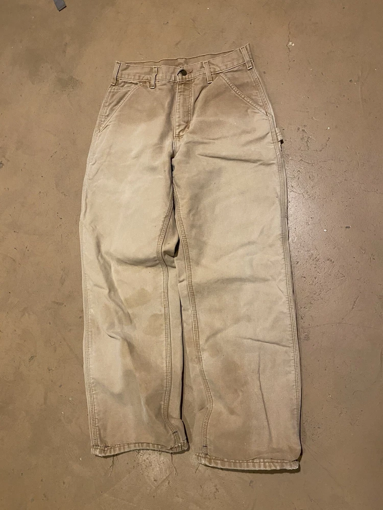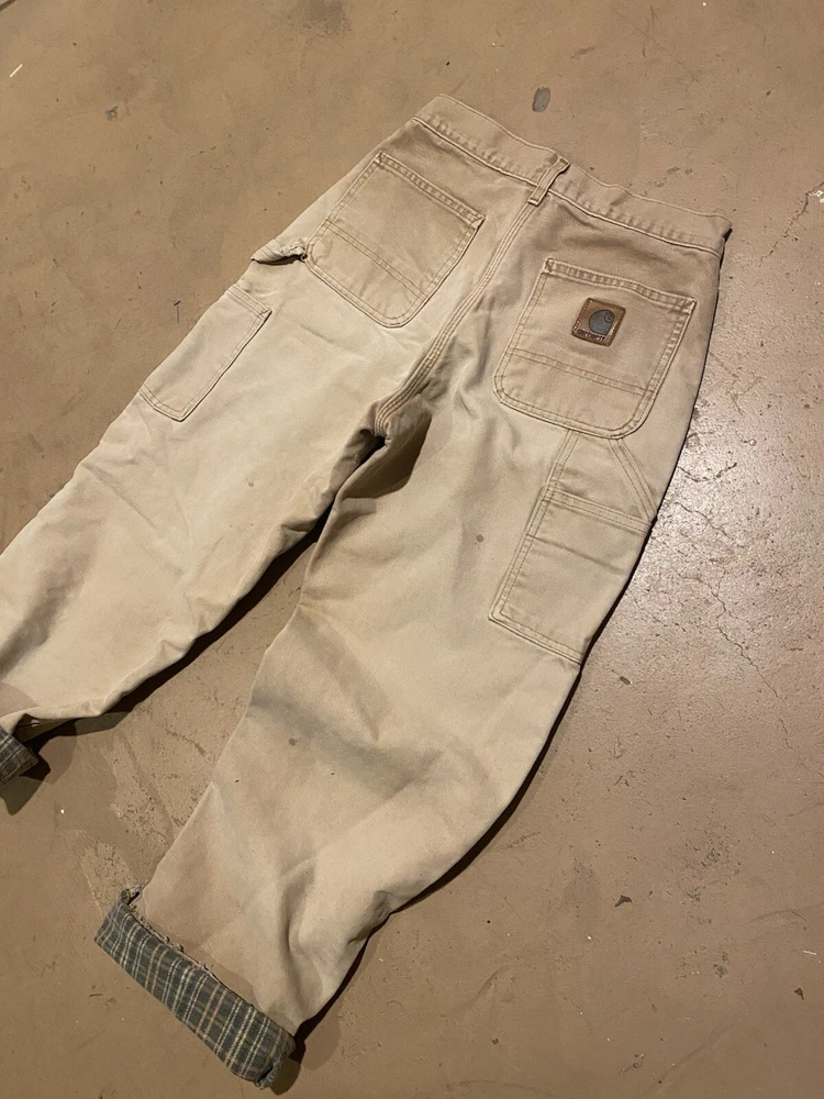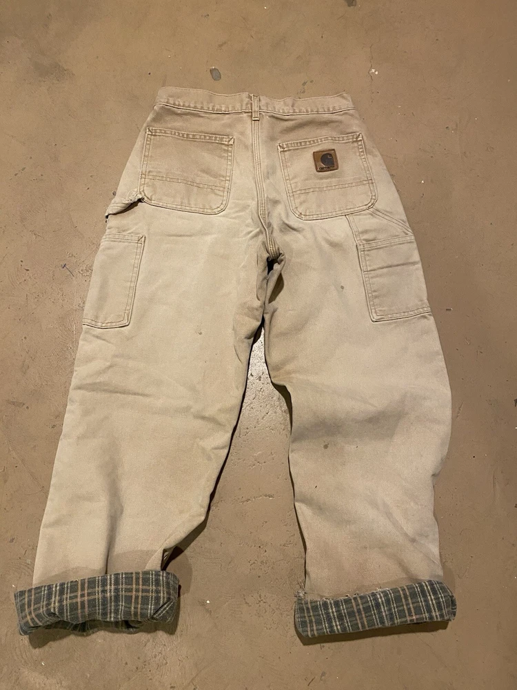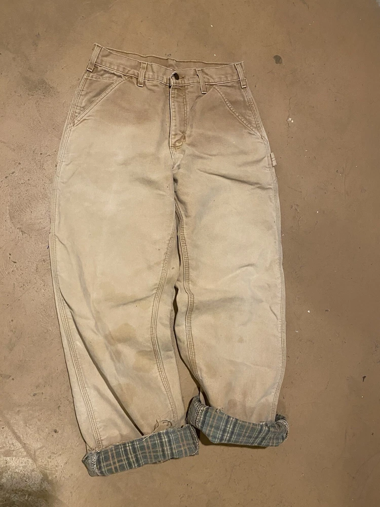 Carhartt B111 Tan Canvas Flannel Lined Carpenter Pants 28 x 32