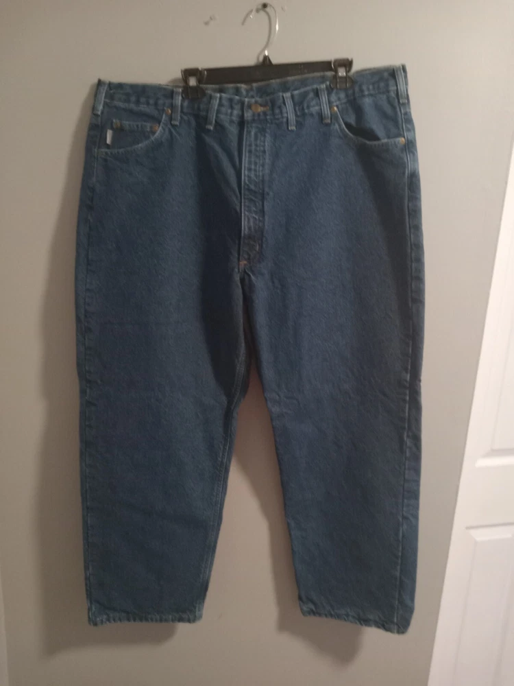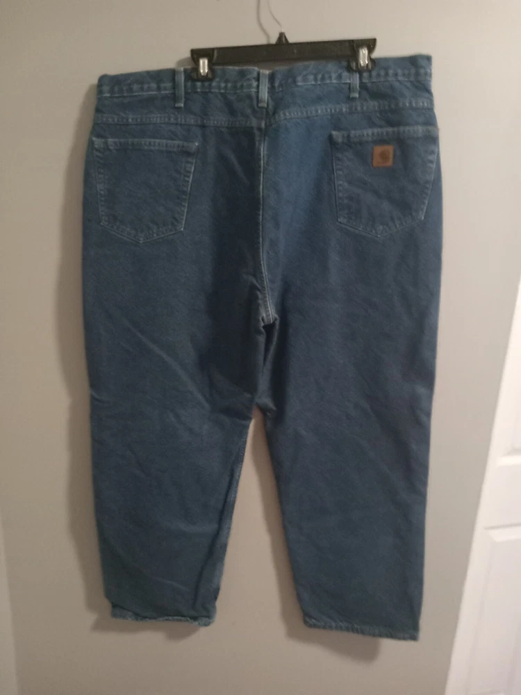 gtin13: Does not apply Leg Style: Straight Accents: Logo, DISTRESSED Pocket Type: 5-Pocket Design Rise: High (Greater than 12 in) Fit: Relaxed Material: Cotton Brand: Carhartt Inseam: 30 Type: Pants Vintage: No MPN: B172 DST Pattern: Solid Closure: Button, Zip Waist Size: 46 Color: Blue Occasion: Casual, Travel, Workwear Size Type: Regular Department: Men UPC: Does not apply Fabric Type: Denim Country/Region of Manufacture: Unknown Features: Lined, Flannel Lined Model: Carhartt B172 Front Type: Flat Front Product Line: Carhartt Size: 46 Garment Care: Machine Washable Style: Jeans Season: Winter