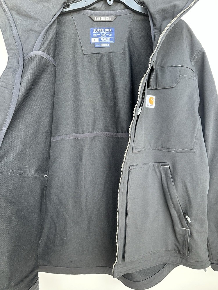 Carhartt Black Super Dux Rain Defender Relaxed Fit Jacket Mens Large Workwear In great condition - no flaws. Measurements laying flat: Pit to Pit 25" Length 29"