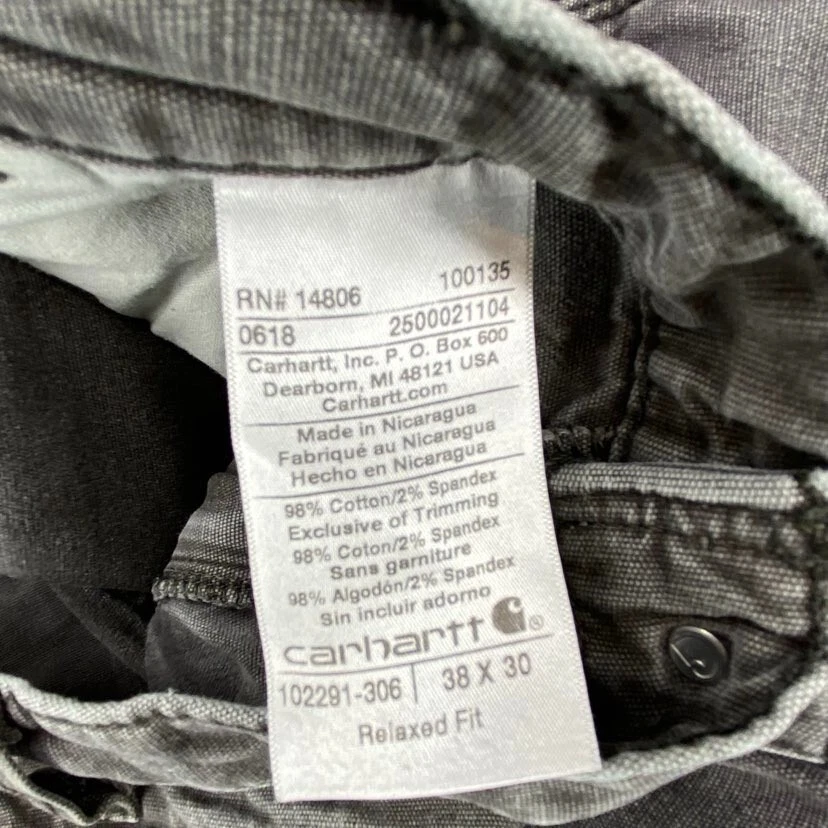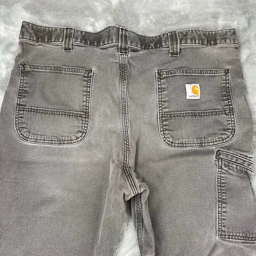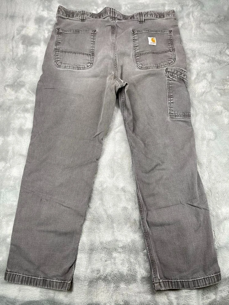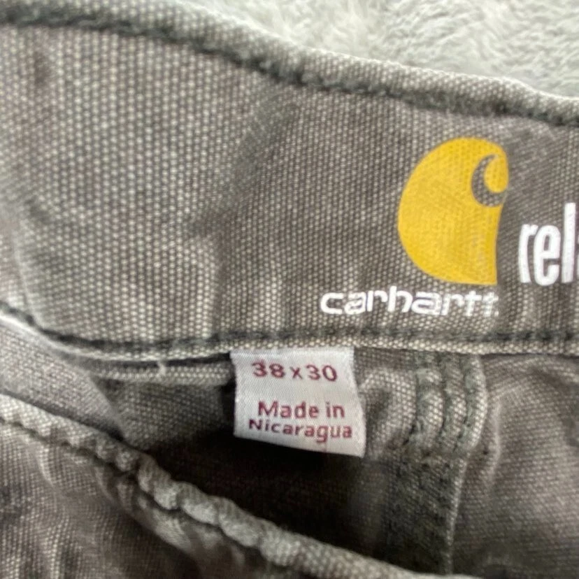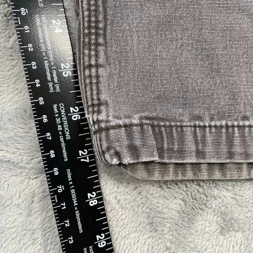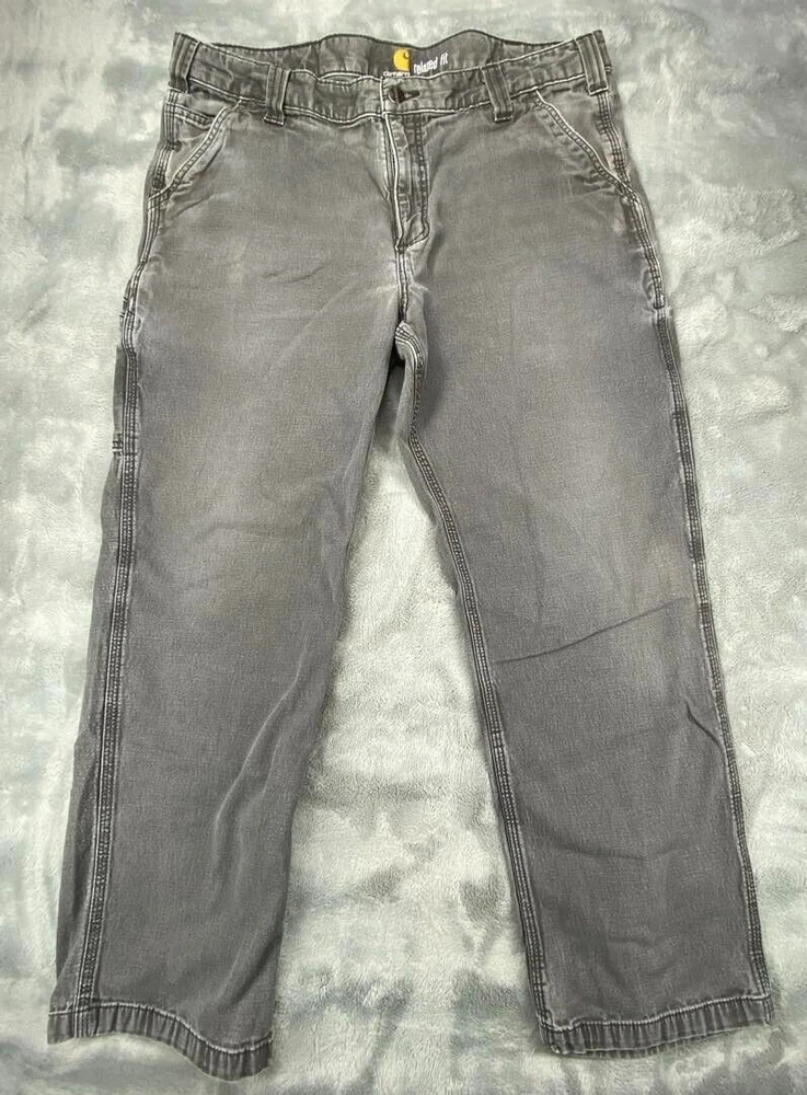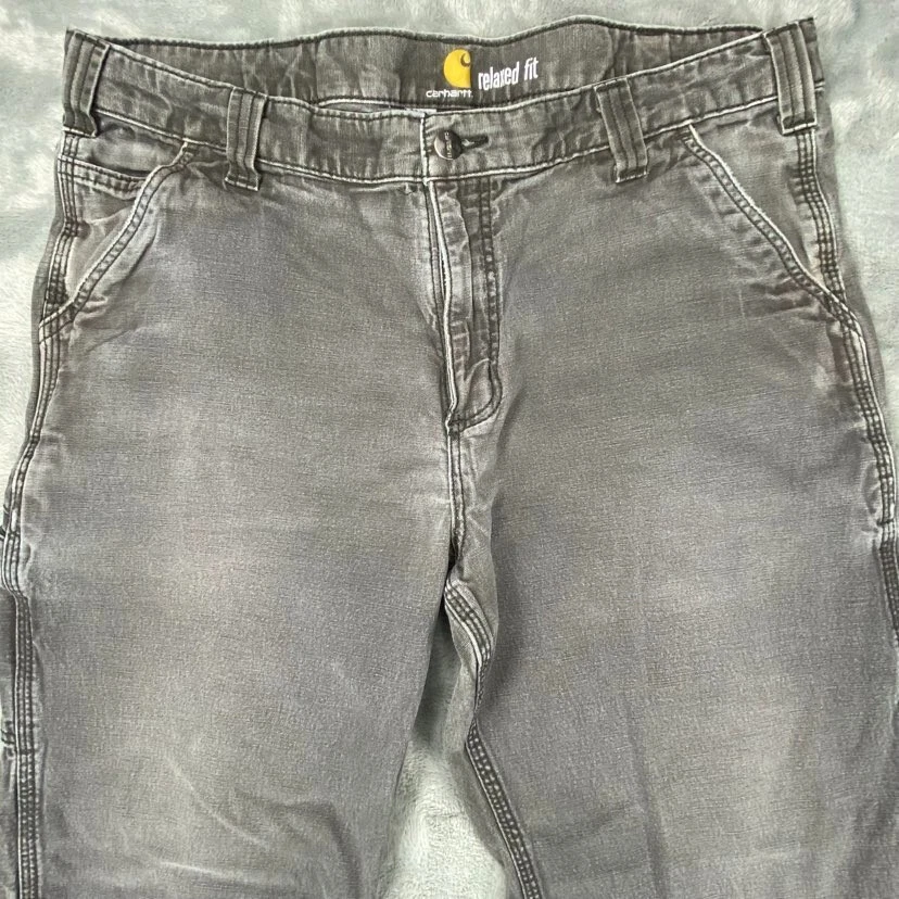 Brand:CarharttWaist Size:36 inDepartment:MenFabric Type:CanvasType:JeansSize Type:RegularStyle:StraightSize:36Color:GrayFit:RelaxedInseam:27 inSeller Notes:“Tag reads "38x30," but actual size is 36 x 27. See photos for measurements.”