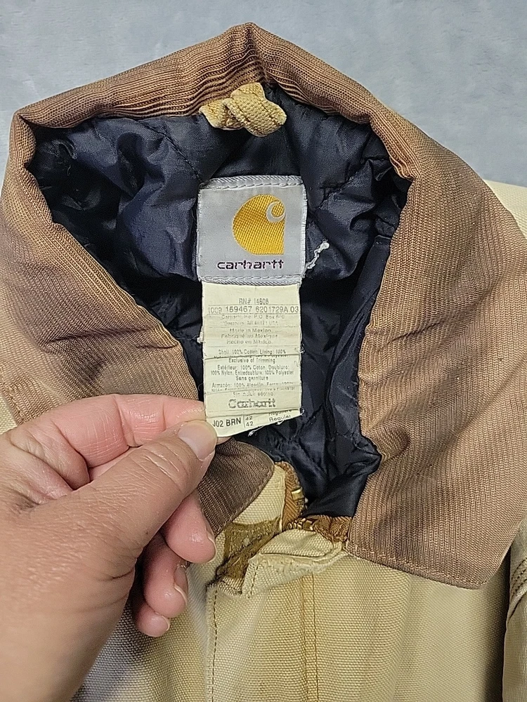 Chest Size: NA Size Type: Regular Brand: Carhartt California Prop 65 Warning: NA Country/Region of Manufacture: United States Features: Lined, Pockets Accents: Logo, Zipper Lining Material: NA Personalize: No Pattern: Solid Jacket/Coat Length: Mid-Length Performance/Activity: Hiking, Hunting Theme: Classic, Outdoor, USA Model: Carhartt J02 Outer Shell Material: Cotton Type: Jacket Closure: Zip Season: Fall, Spring, Winter Occasion: Casual, Workwear Vintage: Yes Department: Men Product Line: Carhartt J97 Collar Style: Point Personalization Instructions: NA Insulation Material: Polyester Garment Care: Machine Washable Style: Quilted Fabric Type: Canvas Handmade: No Color: Brown Fit: Regular Warmth Weight: NA Size: 42 MPN: NA
