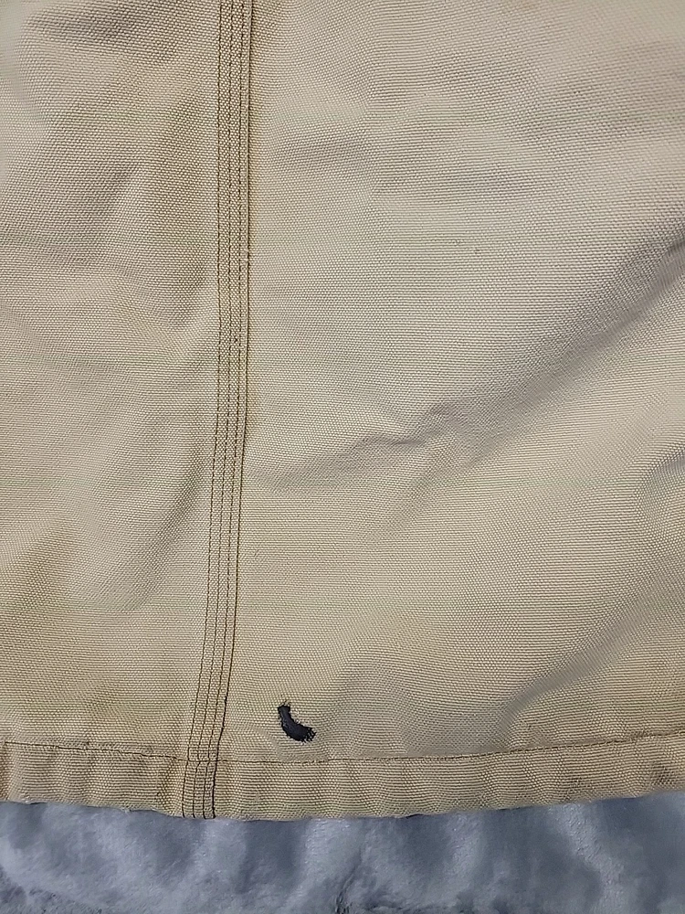 2002 Carhartt Chore Coat. Authentic Heavily distressed frays holes stains this boat has it all. Nice Quilted soft inside. Size 42.