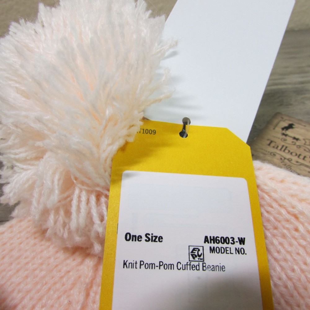 New with tags HAS A SPOT ON FRONT THAT SHOULD WASH OUT (SEE PICS) One Size Brand: Carhartt Color: Georgia Peach Style # AH6003 Knit Pom Pom Cuffed Beanie Winter Stocking Cap Hat
